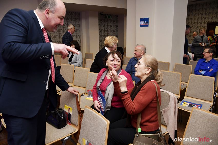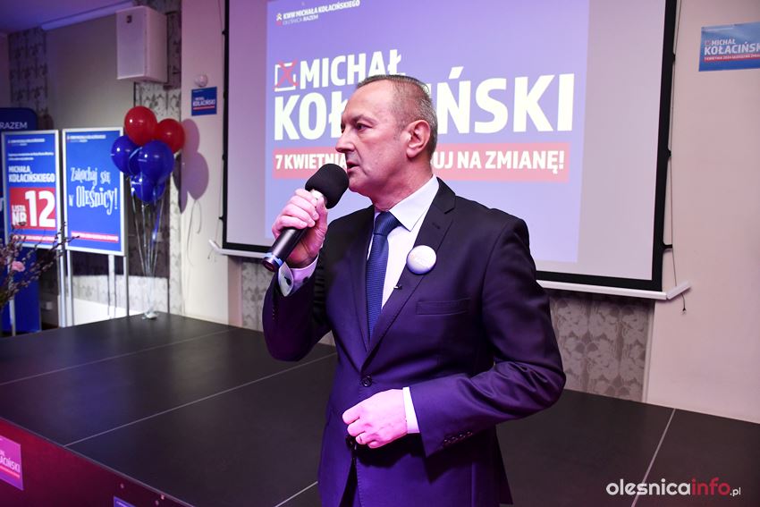 W pierwszej części swojego wystąpienia Kołaciński poddał wnikliwej analizie minioną kadencję oleśnickiego samorządu. Ostro krytykował i wytykał błędy obecnym władzom miasta. Mówił też o inwestycjach, które rozpoczął w swojej kadencji, a które jego następcy „mieli przyjemność kontynuować”, wskazując budowę wschodniej obwodnicy Oleśnicy, uzbrojenie strefy przemysłowej, czy przebudowę ronda na ul. Dobroszyckiej.