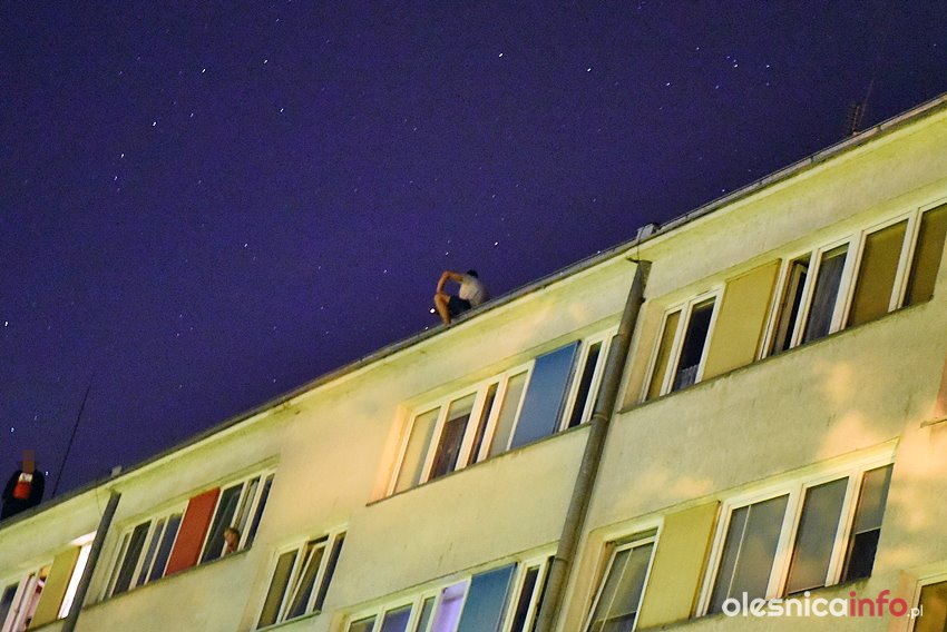 AKTUALIZACJA godz. 23.15: Trwają negocjacje z mężczyzną. Rozmawiają z nim policjanci i rodzina. Mężczyzna podchodzi do krawędzi bloku, siada na niej. Nie chce na razie zejść z dachu budynku, a rozmawiający z nim negocjator nie podchodzi bliżej niż na kilka metrów.