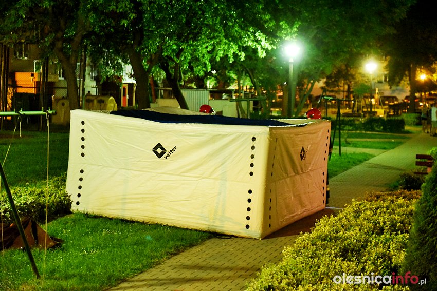 Na miejscu są policja i straż pożarna, która rozstawiła skokochron przy bloku, na dach którego wszedł mężczyzna (prawdopodobnie mieszkaniec tego bloku). Najbliżsi zdesperowanego mężczyzny chcą go odwieść od skoku z dachu budynku.