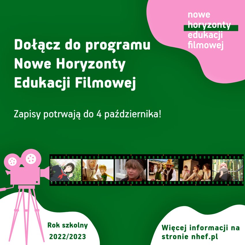 Miejski Ośrodek Kultury i Sztuki w Oleśnicy zaprasza oleśnickie szkoły do zapisów na nową odsłonę programu Nowe Horyzonty Edukacji Filmowej w roku szkolnym 2022/2023.