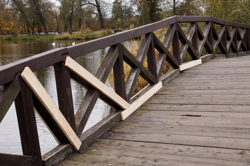 – Wiele drewnianych elementów jest spróchniałych. W niektórych miejscach wystają gwoździe, które nie trzymają desek, przez co, idąc przez mostek, konstrukcja jest mocno niestabilna. Uszkodzone są prawdopodobnie podpory, bo mostek niebezpiecznie przechyla się w lewą stronę, idąc od strony Atola – tak pisaliśmy kilka miesięcy temu.