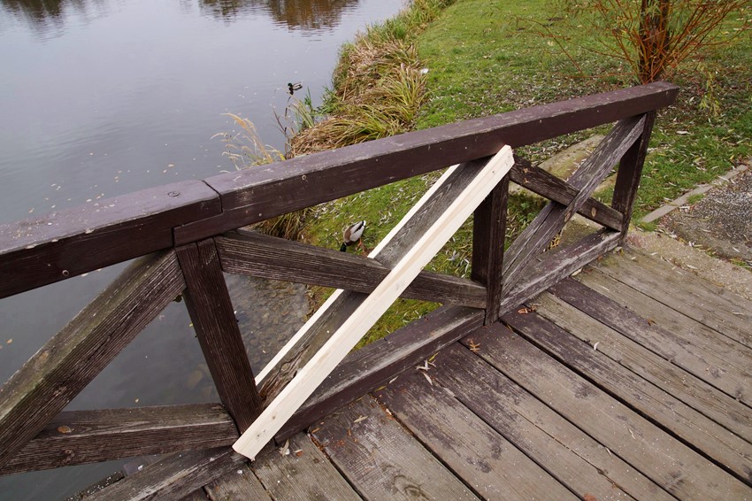 W lipcu pisaliśmy  złym stanie mostku nad oleśnickimi stawami. Teraz most zabezpieczono.