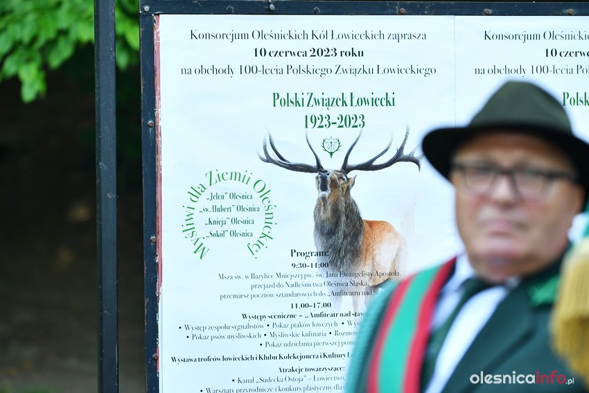 Myśliwi z Oleśnicy, Sycowa, Bierutowa, Twardogóry, Goszcza, Międzyborza i Wrocławia spotkali się dzisiaj w oleśnickim amfiteatrze, by uczcić stulecie swojego związku. Już nad stawami spotkanie rozpoczęli myśliwscy sygnaliści. Wydarzenie poprowadziła Aleksandra Szulc, która – jak sama powiedziała – jest Dianą i poluje od 15 lat.