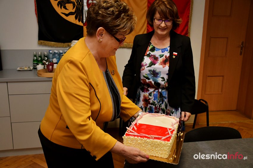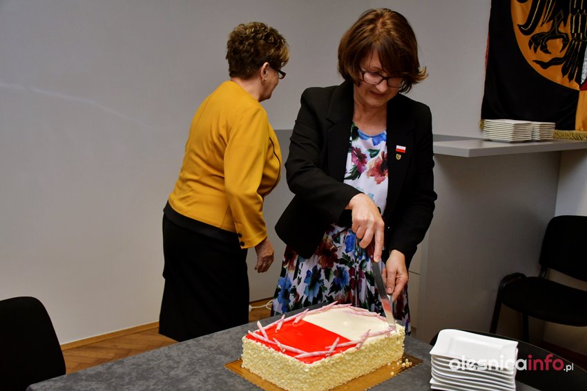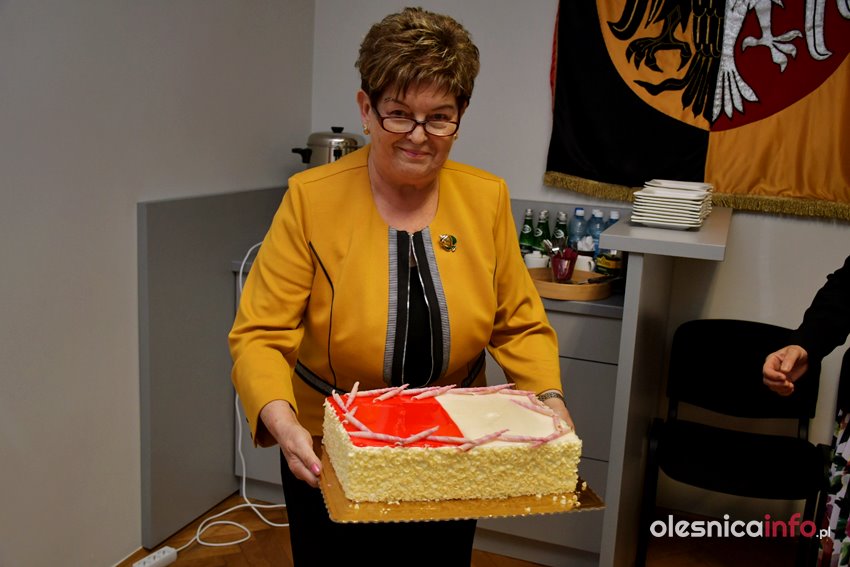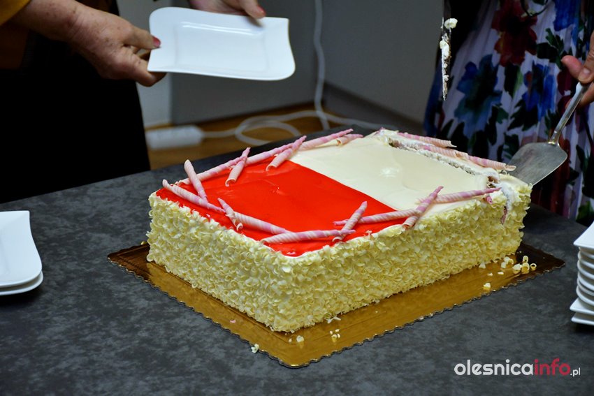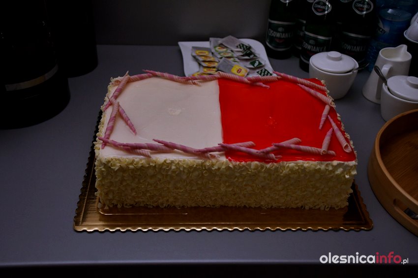 Na słodki poczęstunek zaprosiły podczas przerwy radne Zdzisława Jakimiec i Renata Wojciechowska. Tort w biało-czerwonych barwach podzielono pomiędzy wszystkimi radnymi obecnymi na sesji rady powiatu.