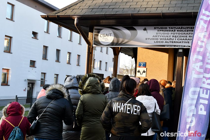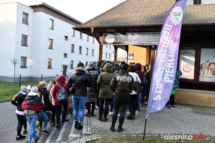Tatuaż-serduszko za wrzut do puszki dla Tosi. Taką akcję tydzień temu wymyślili i ogłosili tatuażyści z oleśnickiego studia CSAiT. Akcji, która, jak okazało się dzisiaj, spotkała się z ogromnym odzewem. Od godziny 10 przed lokalem, gdzie mieści się studio Michała i Anny Głowackich, ustawiała się kolejka. O 13 sięgała ona już wejścia do sąsiadującego ze studiem budynku przedszkola. Stało w niej na pewno ponad sto osób.