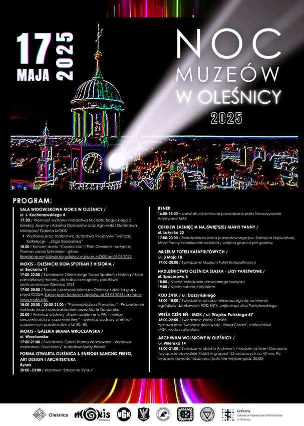 17:00-20:00 / Spacer z przewodnikiem po Oleśnicy / zbiórka grupy przed ODSzH. Zapisy przez formularz zapisów od 05.05.2025 na stronie www.mokis.info