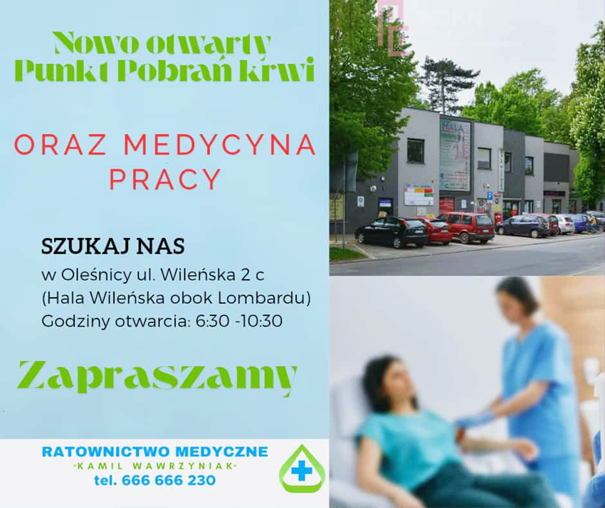 Mieszkańcy Oleśnicy i okolic mają powód do zadowolenia! W budynku Hali Wileńskiej 2C rozpoczął działalność nowoczesny Punkt Pobrań, w którym można wykonać wszystkie badania laboratoryjne, wymazy diagnostyczne oraz badania w ramach medycyny pracy.