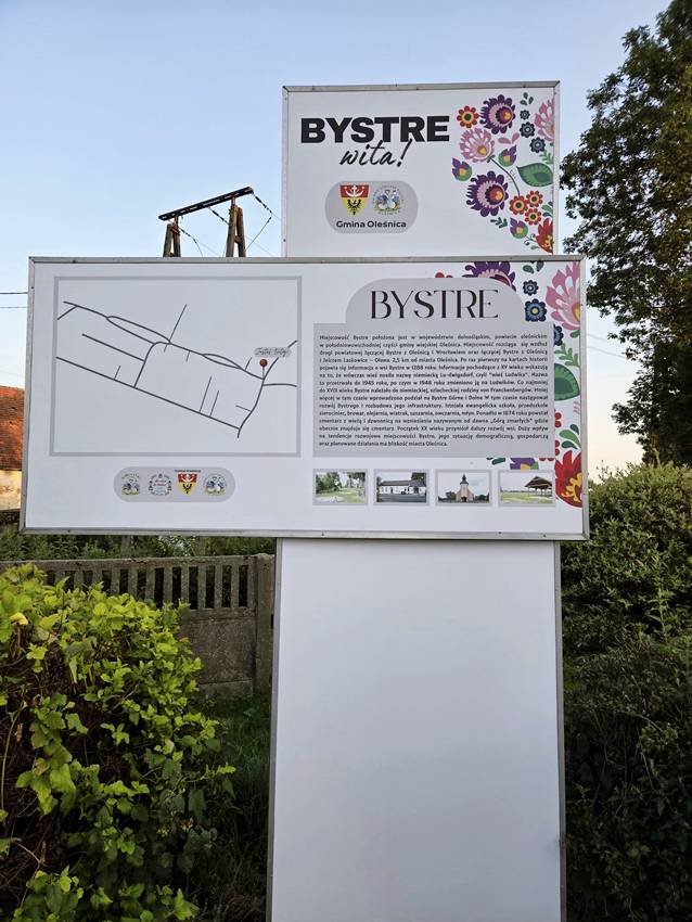 Mieszkańcy sołectwa Bystre mają powód do dumy. Na wjeździe na ul. Pogodną pojawił się nowy, estetyczny witacz, który wita wszystkich przyjezdnych i mieszkańców. Ta sympatyczna inicjatywa została w całości sfinansowana przez Koło Gospodyń Wiejskich w Bystrem „Po nitce do kłębka”.