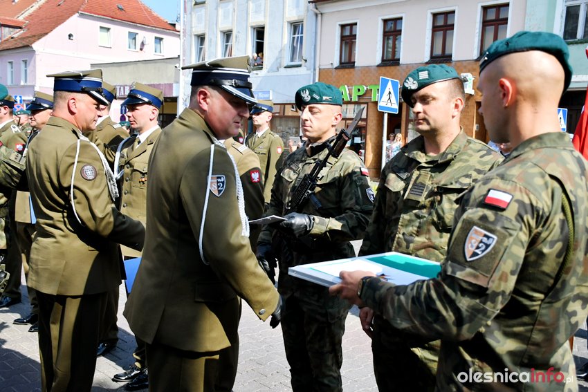 Uroczystość odbyła się w Sycowie na pl. Wolności i była przeprowadzona zgodnie z wojskowym ceremoniałem. Flagę wniesiono na masz, odegrano też Mazurka Dąbrowskiego. – Dziękujemy wszystkim za udział w obchodach – mówił płk. Marek Siebert, kierując te słowa zarówno do mieszkańców, jak i władz samorządowych oraz sycowskich Piłsudczyków. Żołnierzom wręczano awanse na wyższe stopnie zawodowe, a współpracującym z oleśnickim garnizonem burmistrzom i wójtom podziękowania.