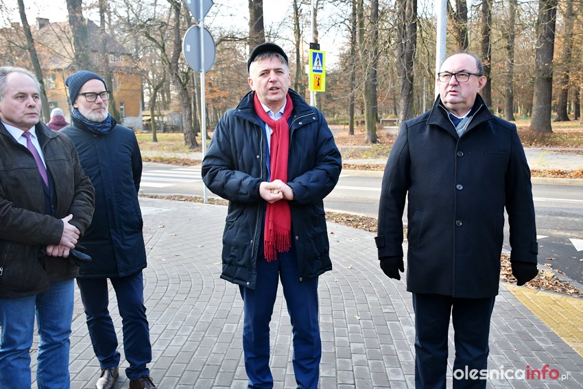 Starosta Sławomir Kapica dziękował za wspólne podjęcia działania i kompleksową przebudowę drogi, z której, jak zauważył, korzystają nie tylko kierowcy z Oleśnicy, ale też z innych gmin powiatu oleśnickiego.