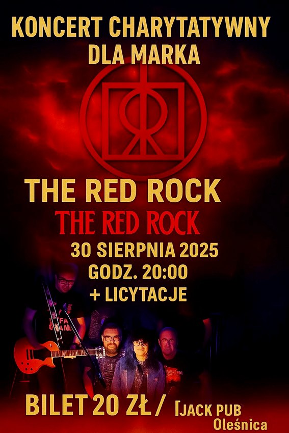 Po południu wydarzenia przeniosą się do Jack Pubu, gdzie o godzinie 20:00 rozpocznie się koncert charytatywny. Na scenie wystąpi zespół The Red Rock, który rozgrzeje publiczność swoją energią i muzyką na żywo. W trakcie koncertu odbędą się kolejne licytacje, a cały dochód z wydarzenia – zarówno z biletów wstępu (20 zł od osoby), jak i z licytacji – zostanie przeznaczony na wsparcie leczenia Marka.