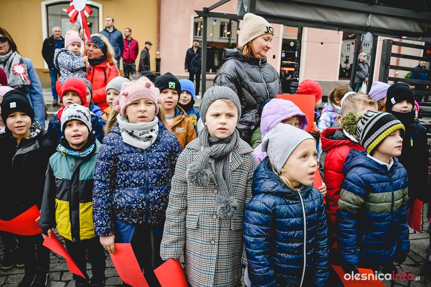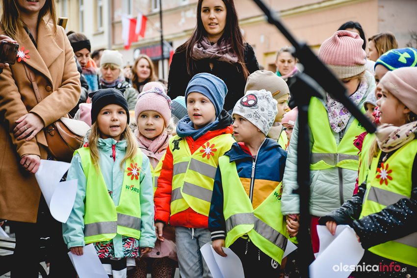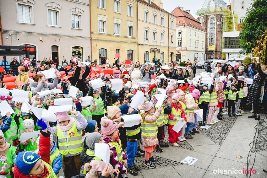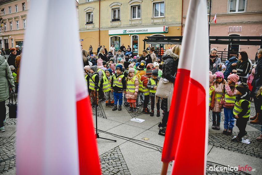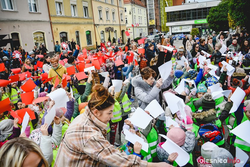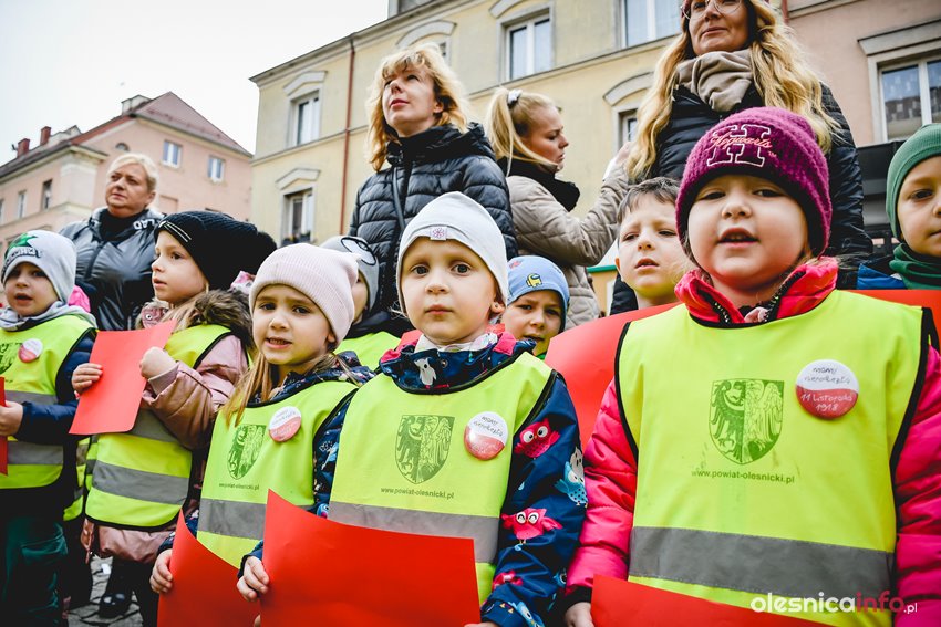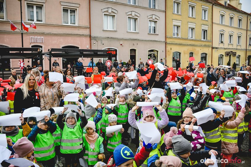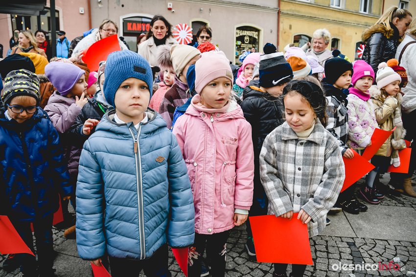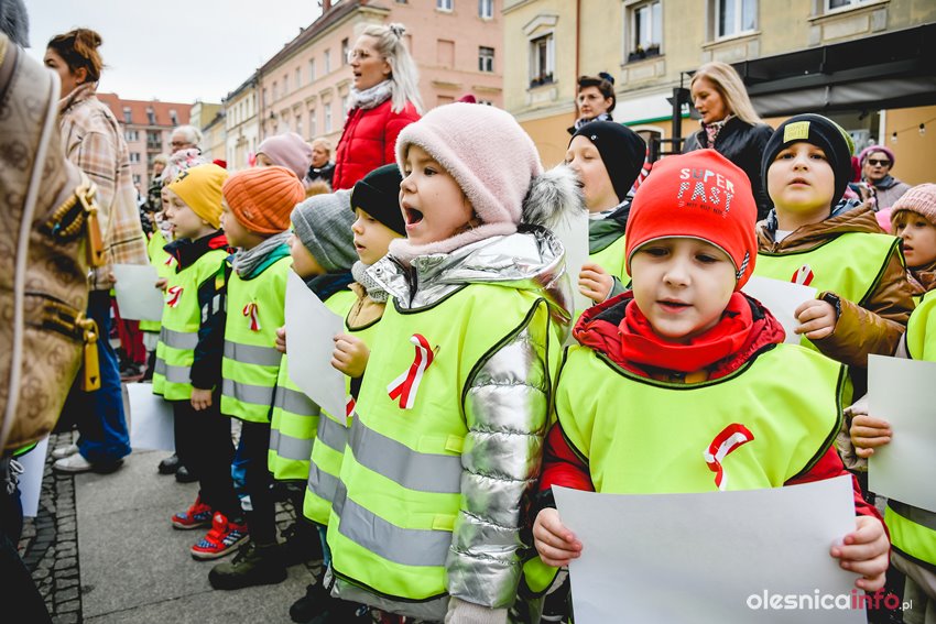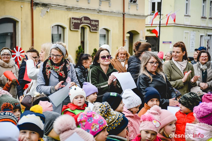 Dzieci z jedenastu oleśnickich przedszkoli pojawiły się dzisiaj na oleśnickim rynku, by wspólnie zaśpiewać polski hymn narodowy