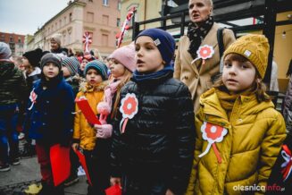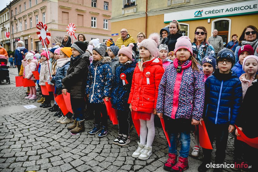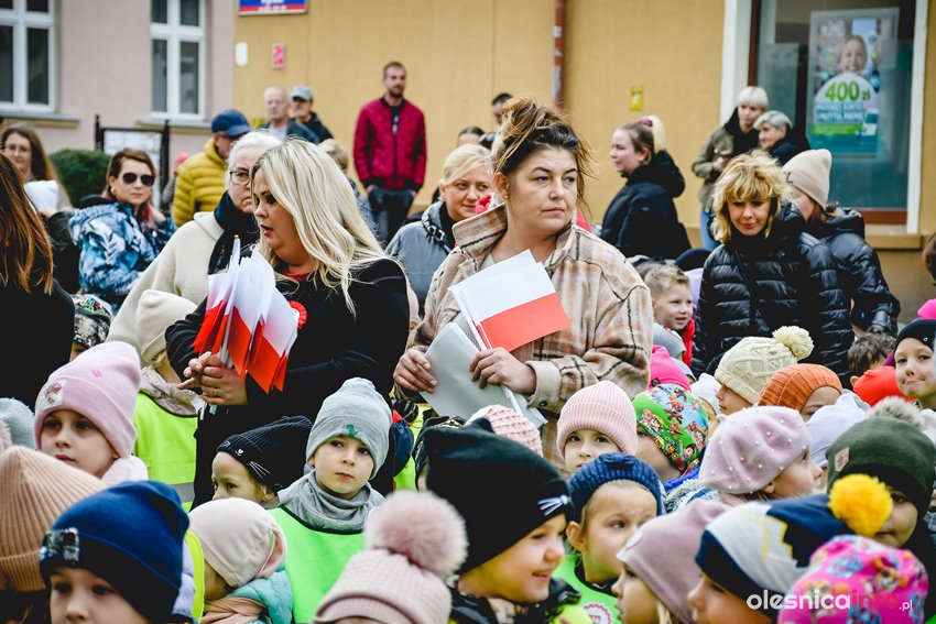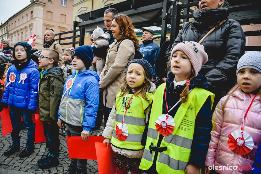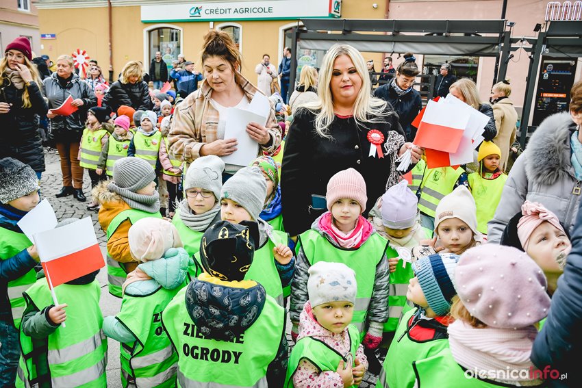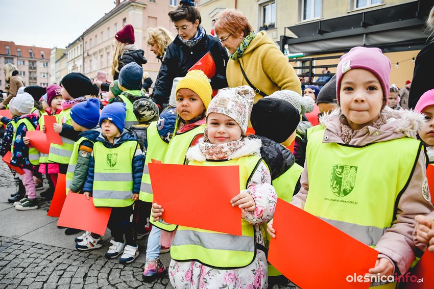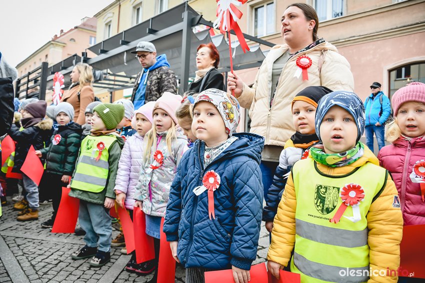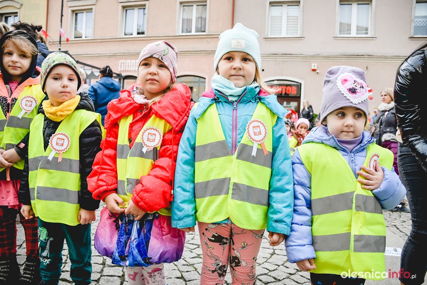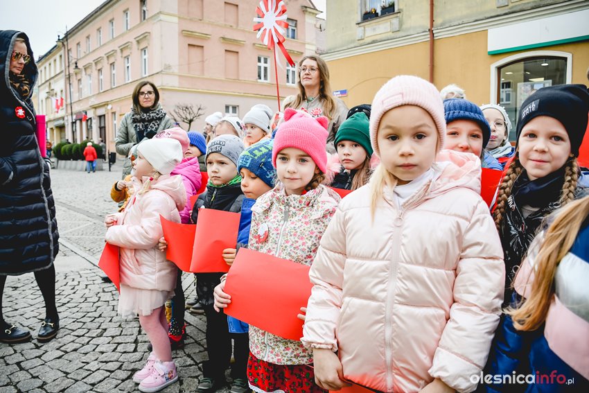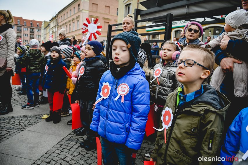 Dzieci z jedenastu oleśnickich przedszkoli pojawiły się dzisiaj na oleśnickim rynku, by wspólnie zaśpiewać polski hymn narodowy