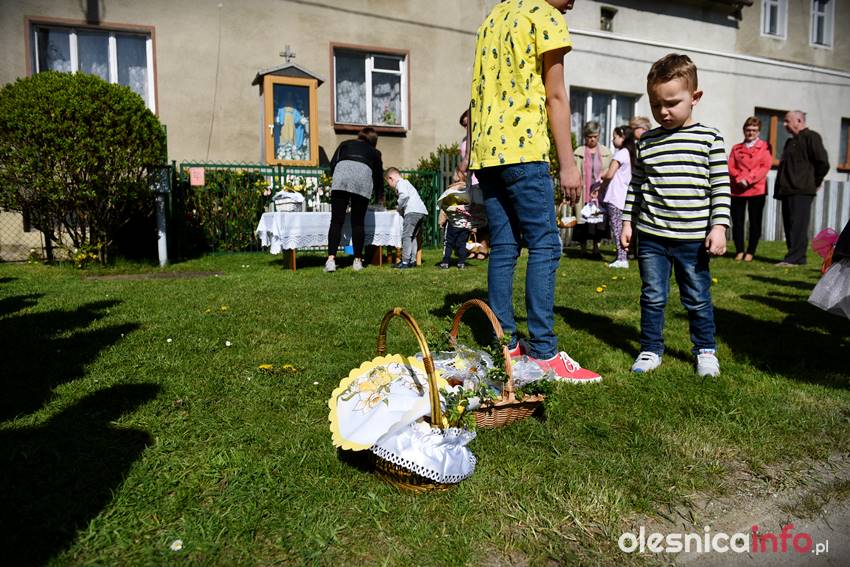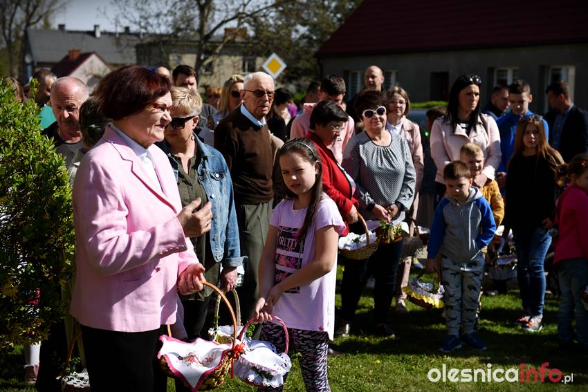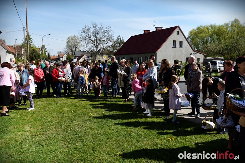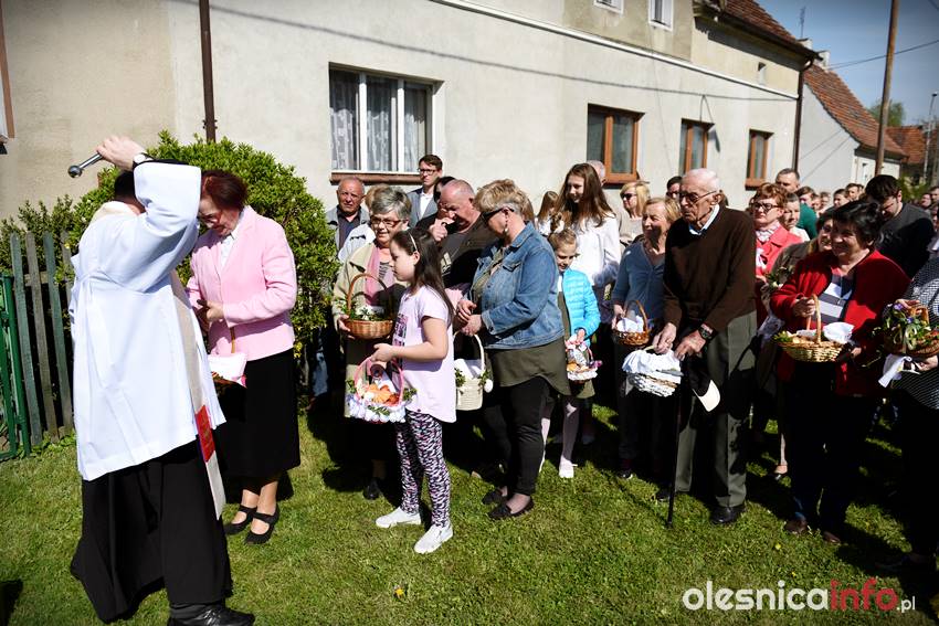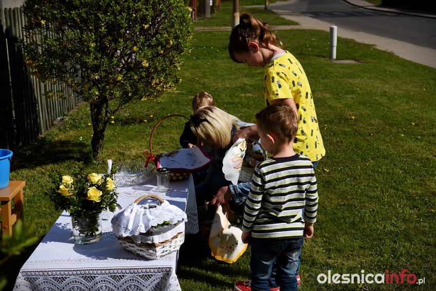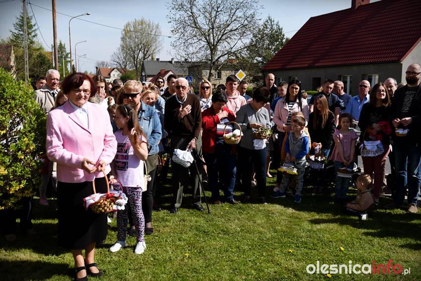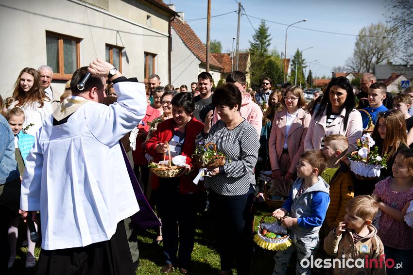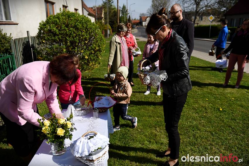 Na Wiejskiej, na Wądołach, na Osiedlu Lucień – w tych miejscach od lat w Wielką Sobotę zbierają się oleśniczanie, by poświęcić pokarmy. Tradycyje związane ze święceniem koszyczków poza kościołem sięgają kilkudziesięciu lat wstecz. Kapliczka na Wiejskiej powstała ponad 30 lat temu. Inicjatorem jej wybudowania był nieżyjący już Józef Jednoróg. – Staramy się, aby to miejsce zawsze było zadbane, żeby po zimie pojawiły się świeże kwiaty – mówiła portalowi OlesnicaInfo.pl Irena Jędrzejczuk, mieszkanka Wiejskiej. – Cieszy nas, że to miejsce gromadzi mieszkańców, że ze święconką pojawiają się tutaj także nowi mieszkańcy.