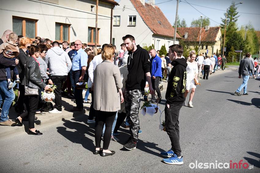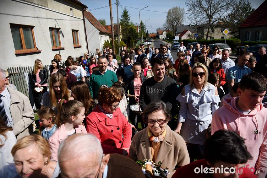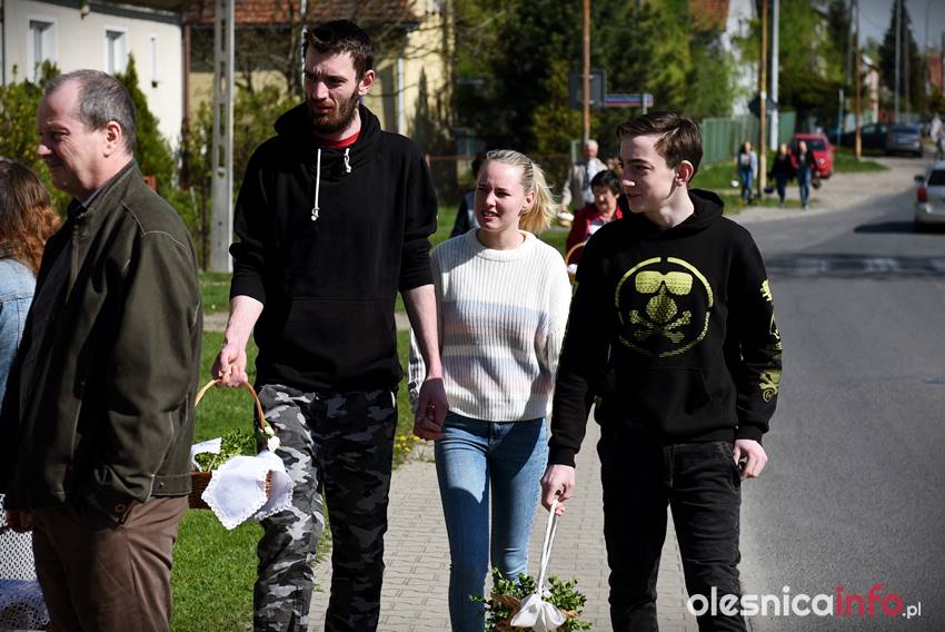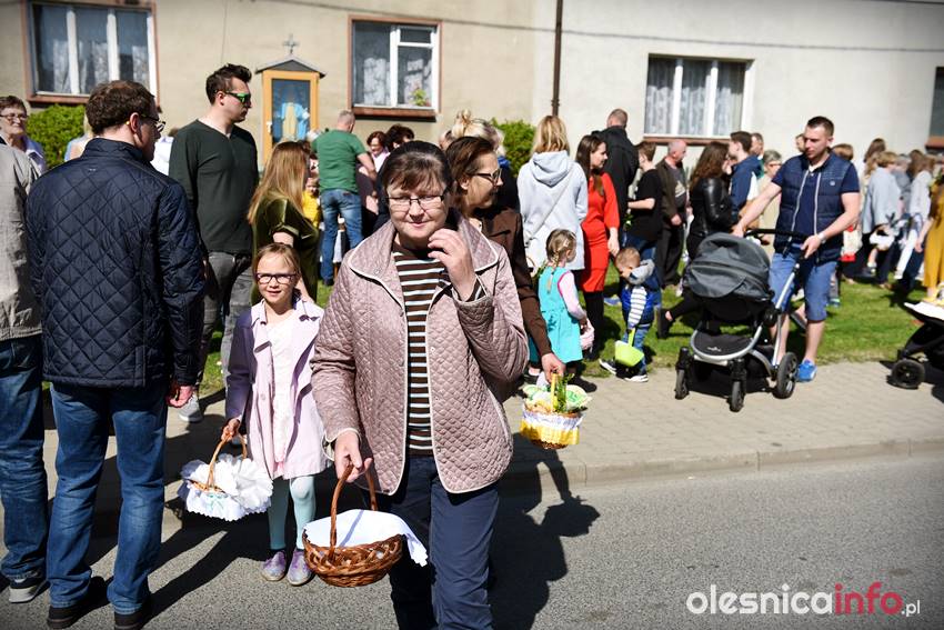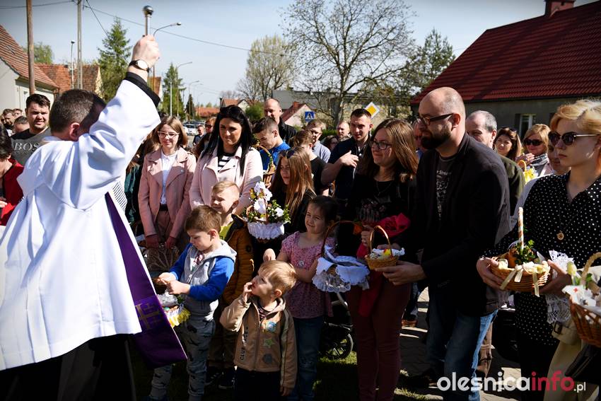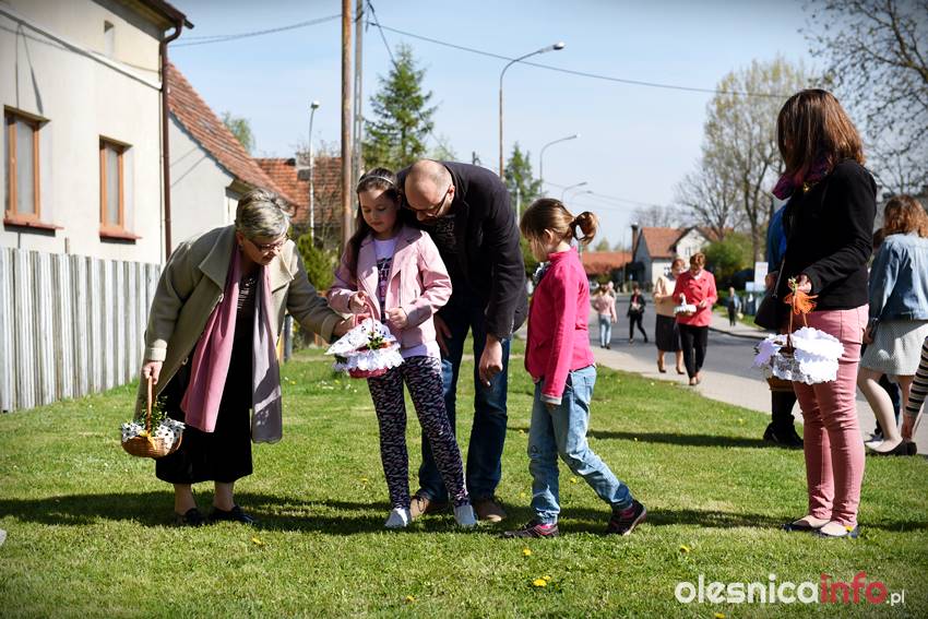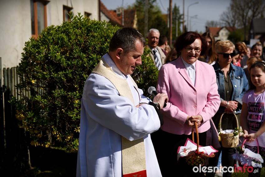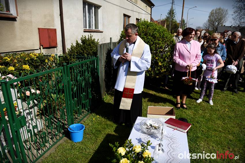 Na Wiejskiej, na Wądołach, na Osiedlu Lucień – w tych miejscach od lat w Wielką Sobotę zbierają się oleśniczanie, by poświęcić pokarmy. Tradycyje związane ze święceniem koszyczków poza kościołem sięgają kilkudziesięciu lat wstecz. Kapliczka na Wiejskiej powstała ponad 30 lat temu. Inicjatorem jej wybudowania był nieżyjący już Józef Jednoróg. – Staramy się, aby to miejsce zawsze było zadbane, żeby po zimie pojawiły się świeże kwiaty – mówiła portalowi OlesnicaInfo.pl Irena Jędrzejczuk, mieszkanka Wiejskiej. – Cieszy nas, że to miejsce gromadzi mieszkańców, że ze święconką pojawiają się tutaj także nowi mieszkańcy.