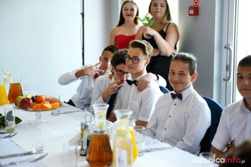 Uczniowie, którzy rozstają się ze szkołą, skorzystali z uroczystości, by podziękować swoim nauczycielom, rodzicom i dyrektor szkoły Marii Kaczmarek. Ósmoklasiści zatańczyli poloneza, do której przygotowała ich nauczycielka wychowania fizycznego Marlena Banaszak. Nie zapomniano też o krótkiej części, a po obiedzie uczniowie ruszyli na parkiet.