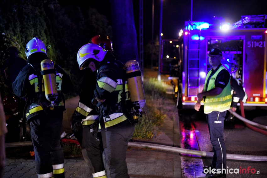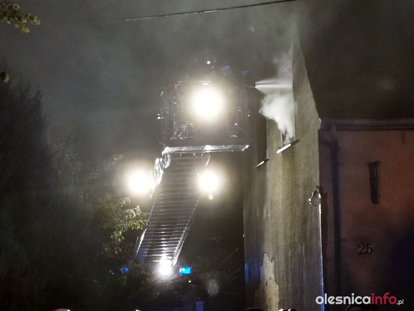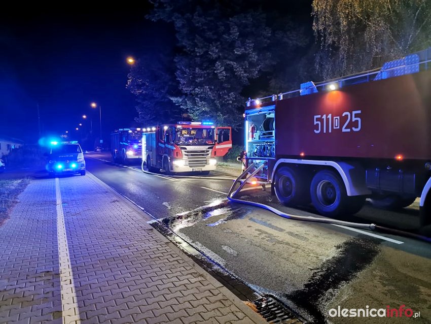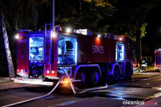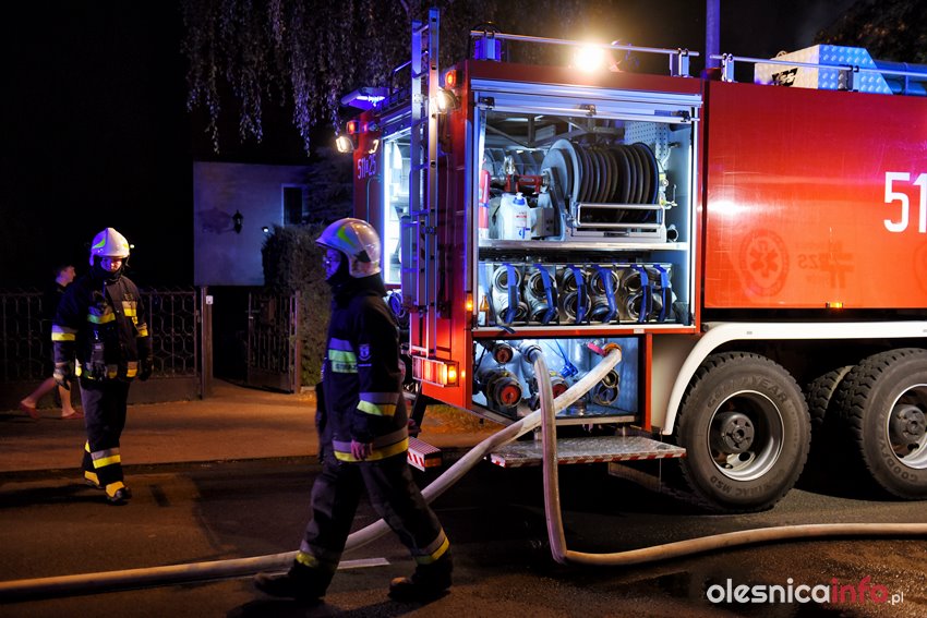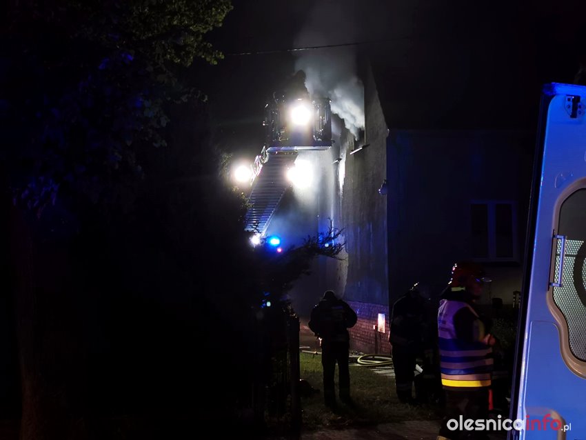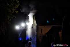 Straż pożarna walczy dzisiaj w nocy pożarem budynku mieszkalnego przy ul. Wiejskiej w Oleśnicy. Płonie poddasze domu jednorodzinnego.