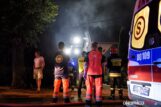 Godzina 2.50. Na miejsce wzywane są kolejne jednostki straży pożarnej oraz pogotowie energetyczne. Pożar nie rozprzestrzenia się, ale nadal trwa walka z ogniem. Teren zabezpiecza policja. Nie wiadomo, jakie są przyczyny pożaru.