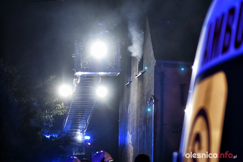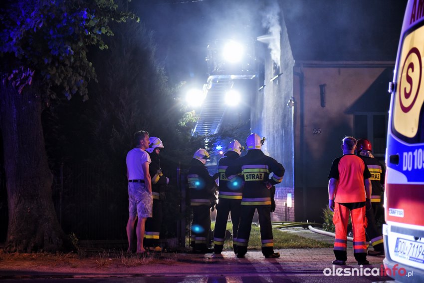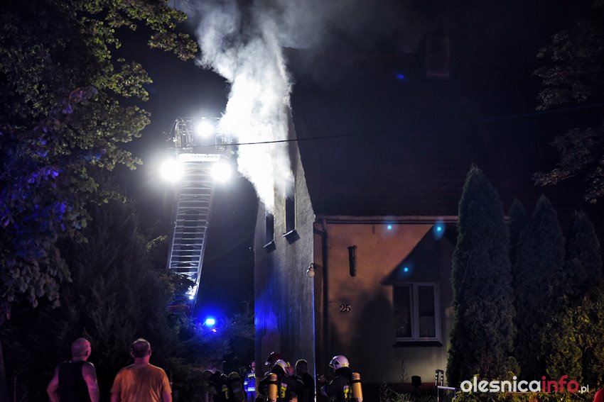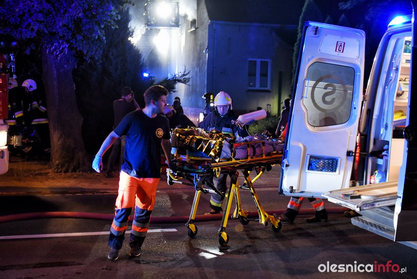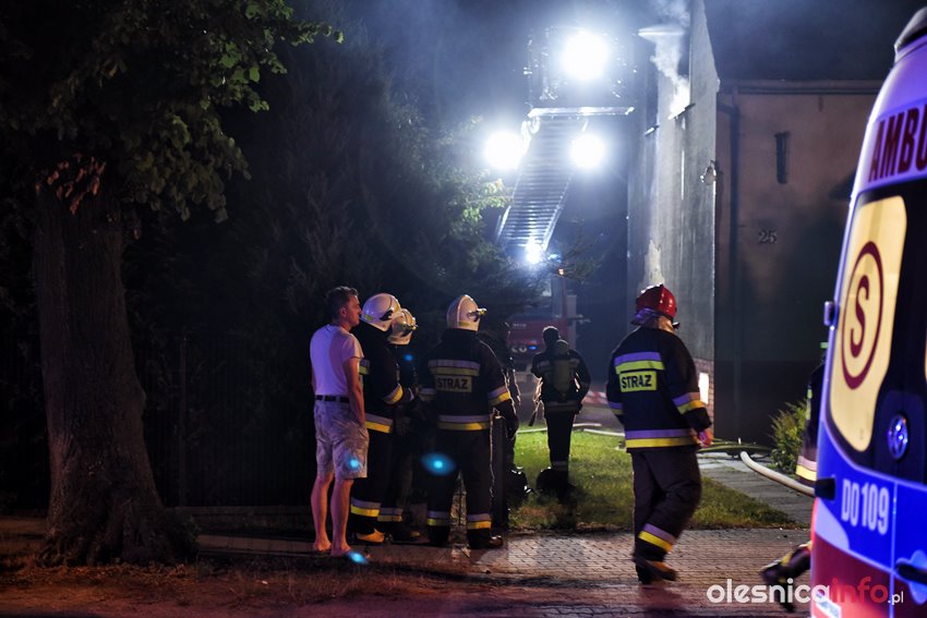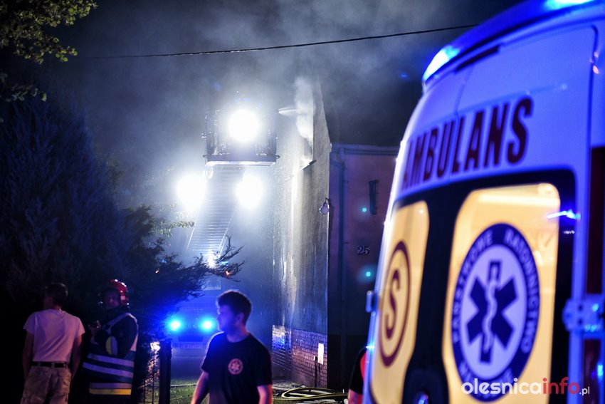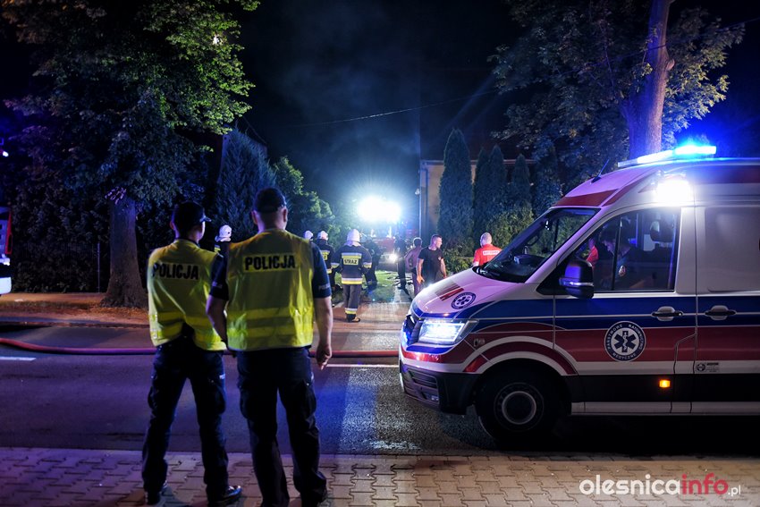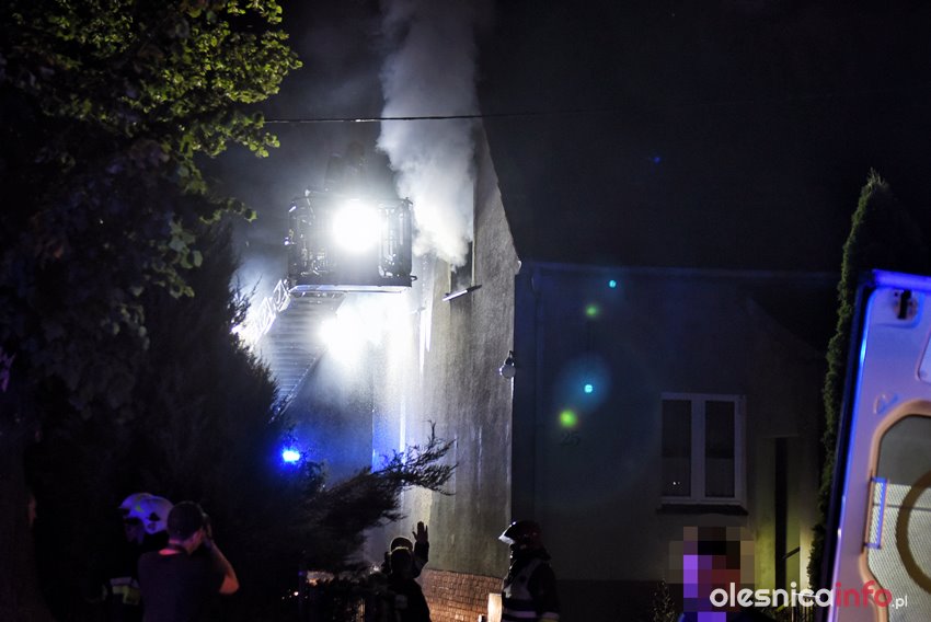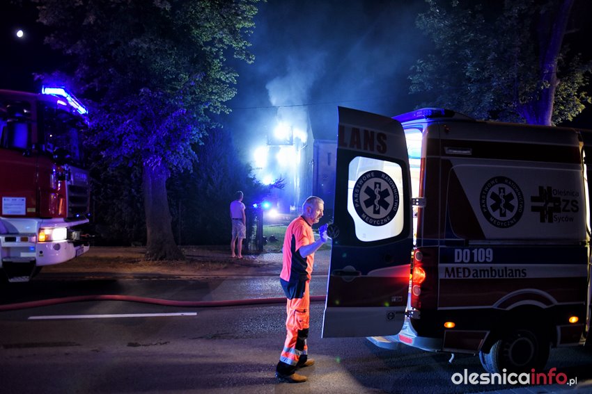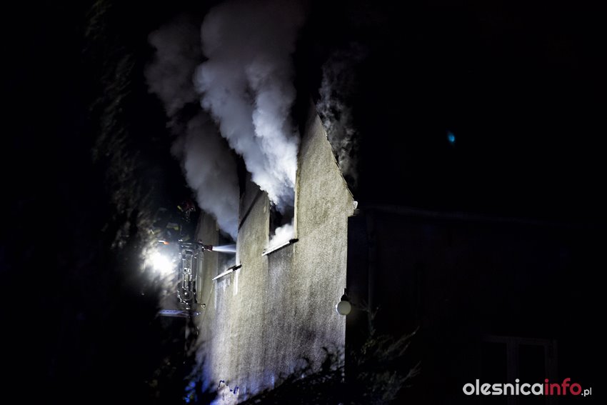 Godzina 2.30. Pali się poniemiecki dom jednorodzinny. Na miejscu jest kilka zastępów straży pożarnej z Oleśnicy, Dobroszyc, Ligoty Małej i Sokołowic. Jest też pogotowie ratunkowe oraz Służby Ratownicze. Z budynku już ewakuowano trzy osoby, które znajdowały się tam w chwili wybuchu pożaru. Płonie poddasze domu. Jedna osoba została zabrana do szpitala.