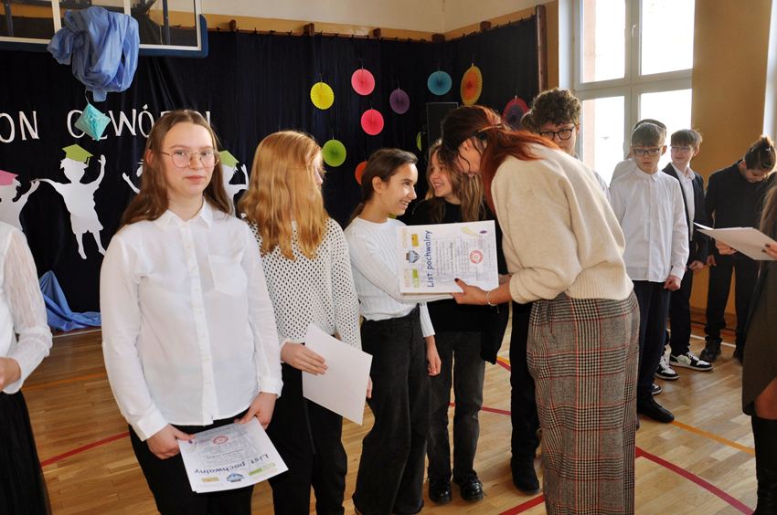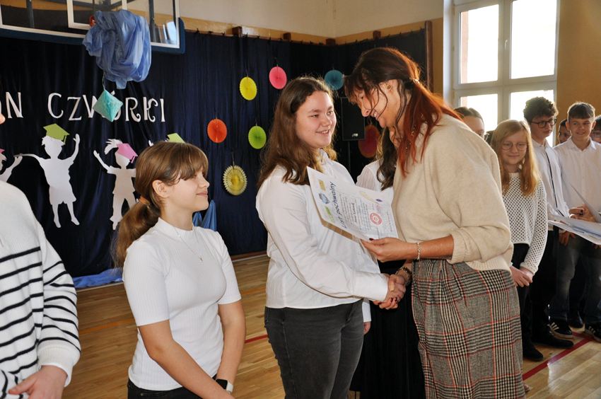 W czwartek odbył się Panteon Czwórki, podczas którego wyróżniono najlepszych uczniów po pierwszym semestrze nauki. To coroczna impreza w oleśnickiej szkole mająca na celu uhonorowanie prymusów. Dyplomy wręczała im wraz z wychowawcami dyrektorkami czwórki Ewa Robotycka-Ślak.