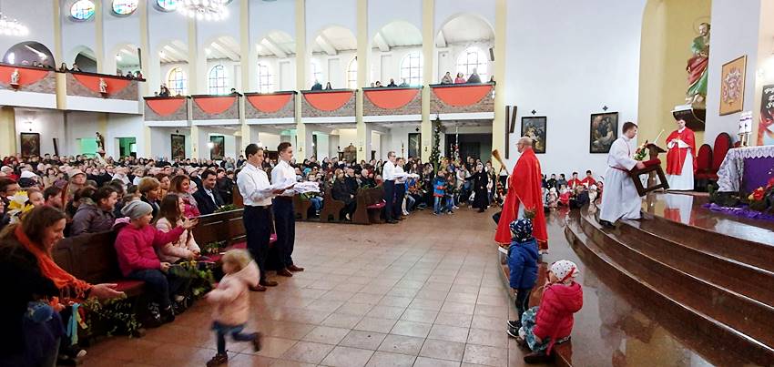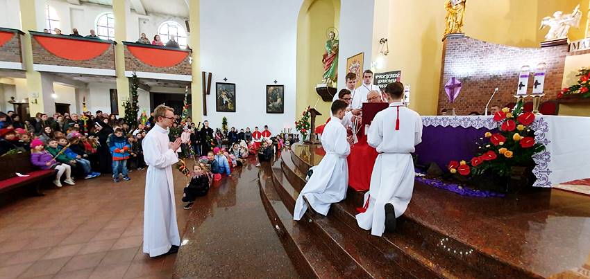 Nowymi lektorami w tej oleśnickiej parafii zostali: Maciej Łacny, Michał Kiraga, Bartosz Stadniczenko oraz Mateusz Chrzanowski. Opiekunem ministrantów jest ks. Aleksander Ilnicki. Uroczystość wprowadzenia do posługi lektorskiej odbyła się z udziałem ks. proboszcza Zdzisława Paducha.