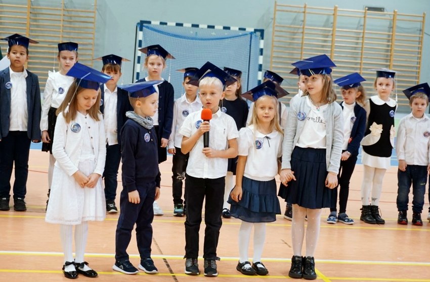 Podczas uroczystości pierwszoklasiści pokazali, że potrafią pięknie śpiewać piosenki i recytować wiersze.