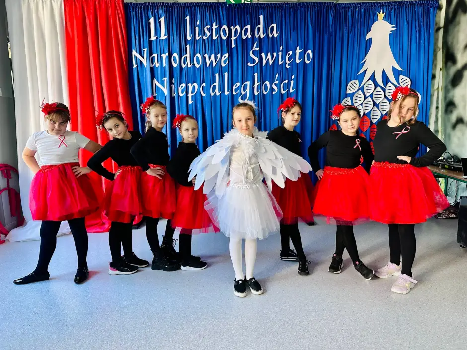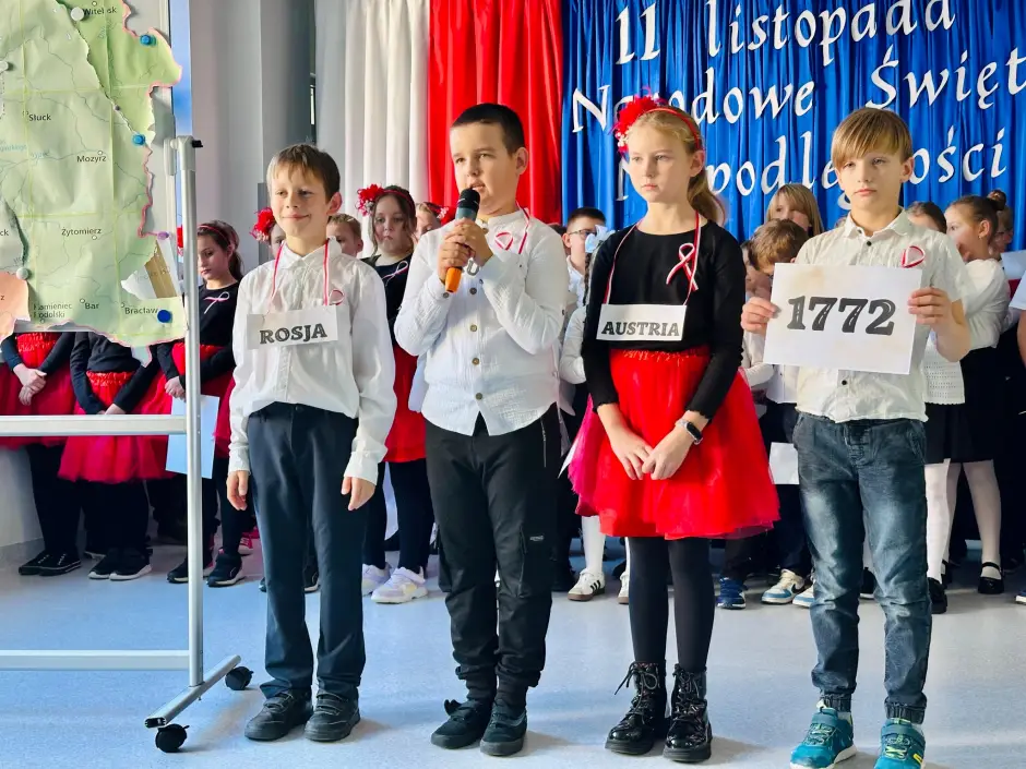 O godzinie 11:11 cała społeczność szkolna – uczniowie klas I–VIII, nauczyciele i pracownicy szkoły – zebrała się na holu, aby wspólnie i uroczyście odśpiewać hymn państwowy. Ten wyjątkowy moment był wyrazem szacunku, pamięci i wdzięczności wobec tych, którzy walczyli o wolność naszej ojczyzny.