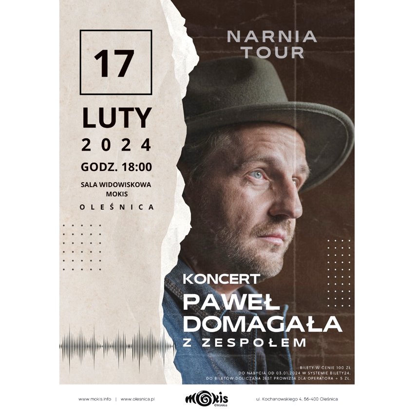 17 lutego w sali widowiskowej MOKiS odbędzie się koncert Pawła Domagały z zespołem.