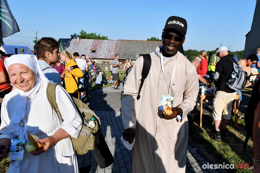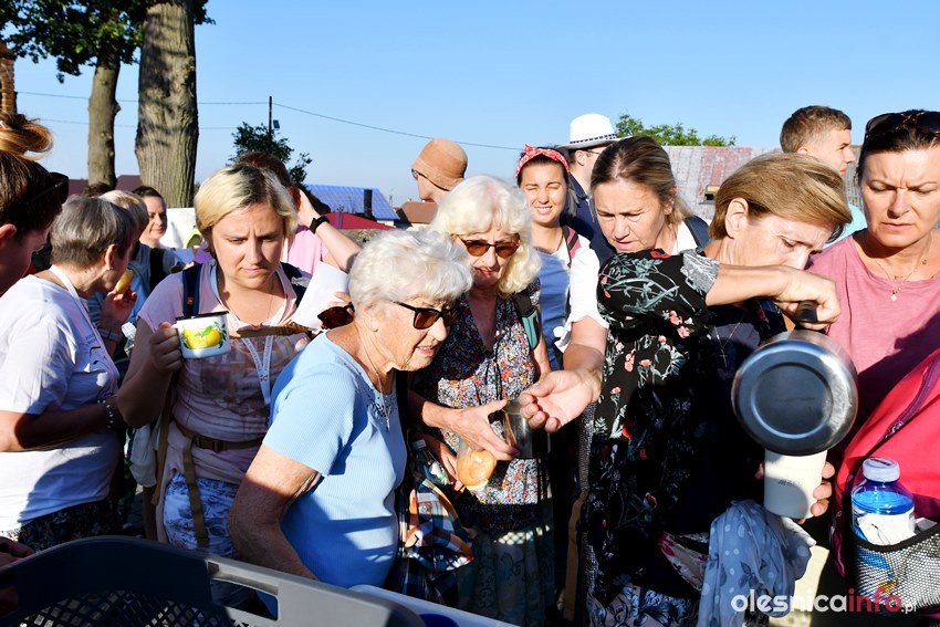 Pielgrzymi chętnie skorzystali z zaproszenia. Do Smolnej dotarli na chwilę przed godziną 7, gdzie mieli czas na odpoczynek i zjedzenie posiłku. W grupie piątej, tzw. oleśnickiej na Jasną Górę podążał m.in. Wiktor Bąk. – To moja 28 pielgrzymka – mówi w rozmowie z nami mieszkaniec Oleśnicy, wieloletni działacz społeczny, były radny. – Z roku na rok jest coraz ciężej, bo lat przybywa, ale są intencje, więc podejmuję kolejne wyzwania – uśmiecha się.