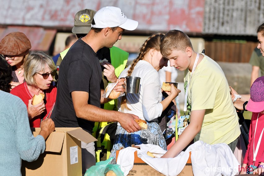 Dzisiaj o 6 rano pielgrzymi z wrocławskiej pieszej pielgrzymki na Jasną Górę wyruszyli z Oleśnicy. Na tradycyjnym śniadaniu podejmowali ich mieszkańcy Smolnej.
