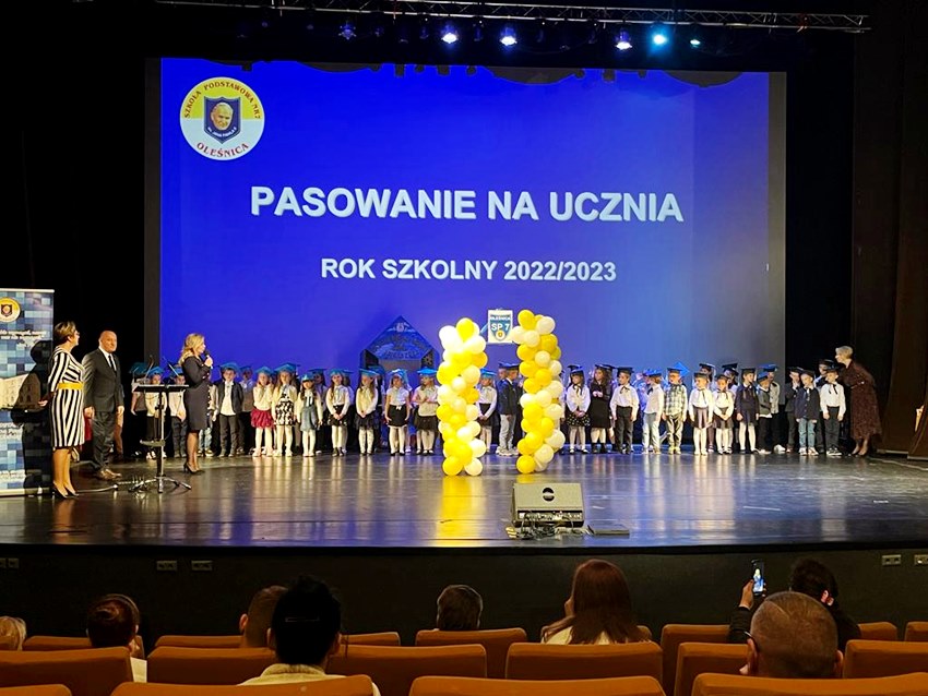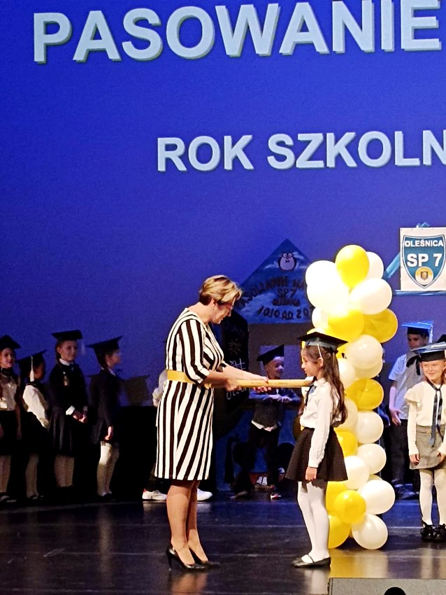 W sali widowiskowej odbyła się uroczystość pasowania na ucznia. Wzięli w niej uczniowie klas pierwszych wraz z rodzicami oraz dyrektor SP 7 Dorota Rasała-Świtoń, wiceburmistrz Edyta Małys-Niczypor i przewodniczący Rady Miasta Oleśnicy Aleksander Chrzanowski.