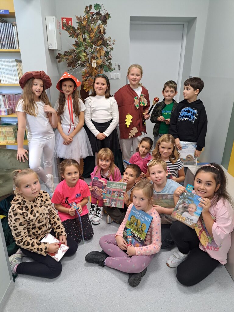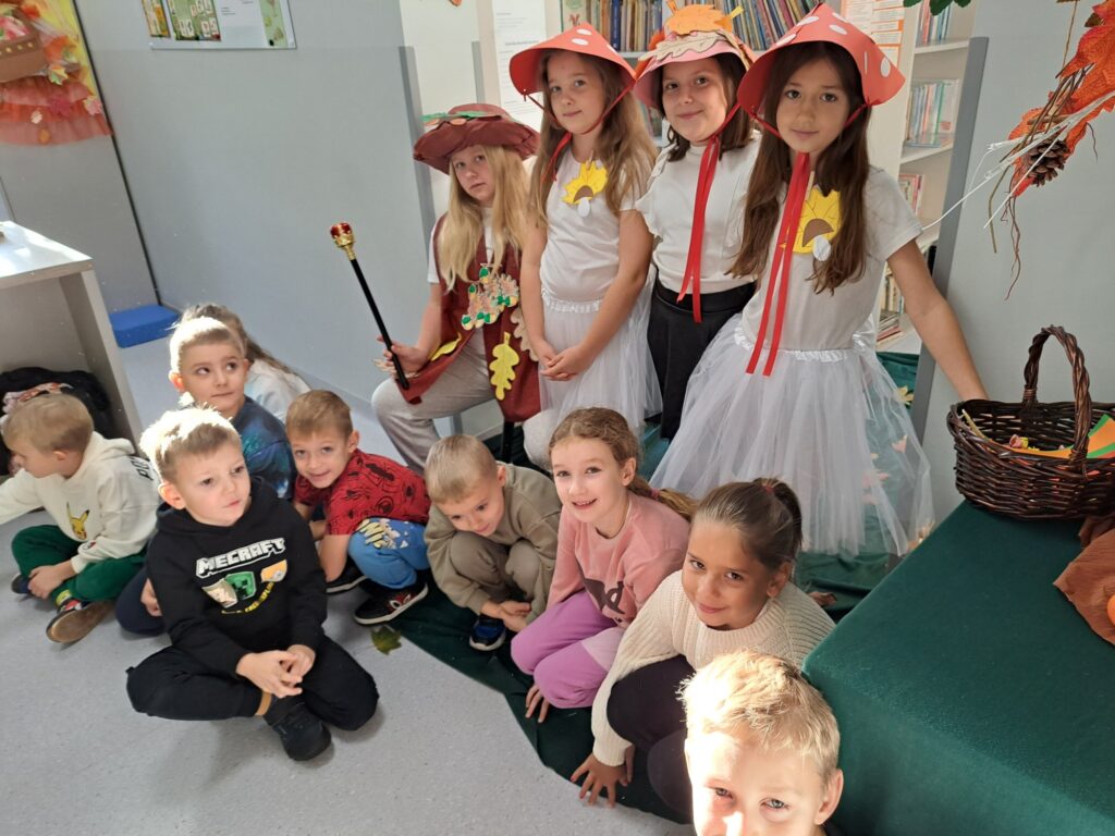 Z tej okazji uczennice z klas czwartych przygotowały inscenizację wiersza Jana Brzechwy „Grzyby”. W rolę Króla Borowika wcieliła się Natalia Ozimek z klasy 4b, natomiast w grzyby – Emilia Popiela i Iga Sapa. Funkcję narratora pełniła Aleksandra Peregrym z klasy 4a. Występ czwartoklasistek dostarczył pierwszakom wiele radości i wprowadził ich w baśniowy, literacki nastrój.
