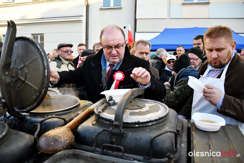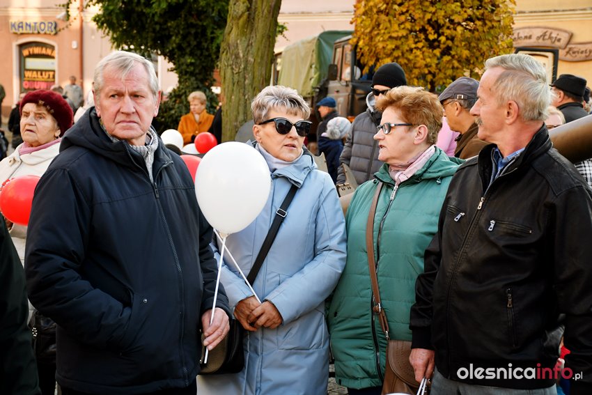 – Świętujmy razem – apelował do uczestników wydarzenia burmistrz Jan Bronś, podkreślając, że piknik koordynuje radny Marek Kamaszyło, a do jego organizacji dołączyły także stowarzyszenia. Były biało-czerwone balony, które wypuszczono w niebo, słodki tort, którym mogą się częstować oleśniczanie i wspólne śpiewanie z Oleśnickim Uniwersytetem III Wieku. Do godziny 17 można oglądać sprzęty prezentowane na starówce stowarzyszenia, wojsko i strażacy.