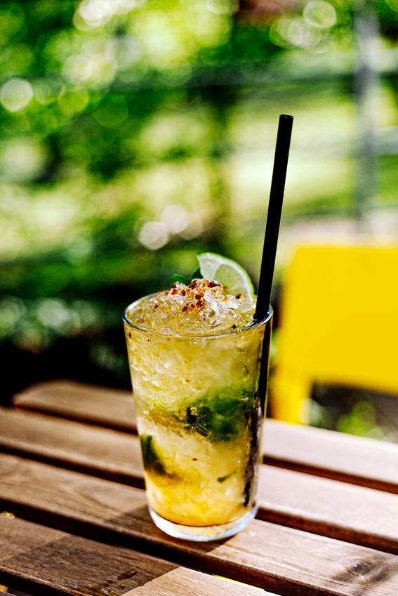 Oszklony, otoczony zielenią, pozwala cieszyć się świeżym powietrzem niezależnie od pogody. To jedno z tych miejsc, gdzie czas płynie wolniej – idealne na kawę lub wieczorny chill w towarzystwie drinków.