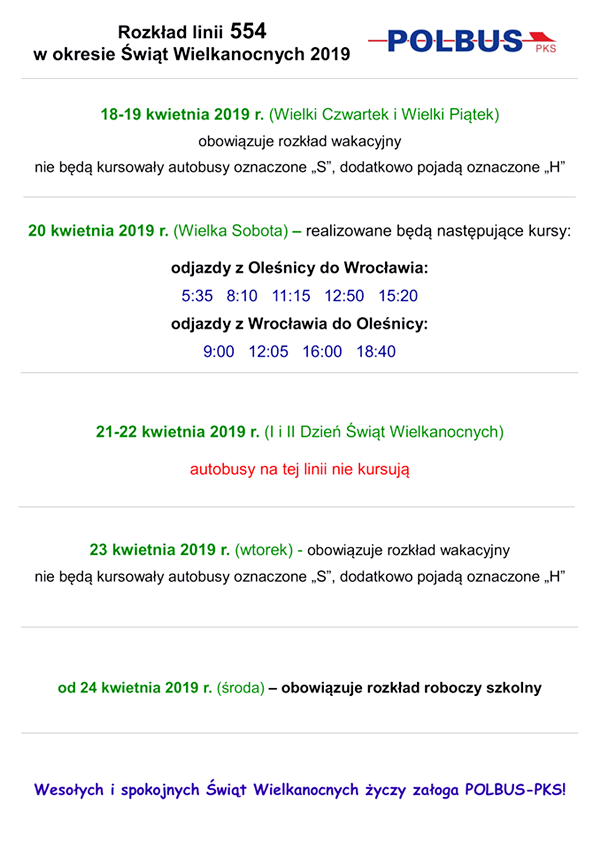 Polbus zmienia rozkład jazdy na święta