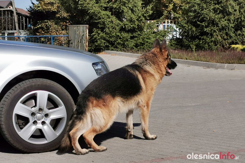 Z tego auta owczarek niemiecki został wyproszony, ale zwierzę wydaje się zagubione lub porzucone. Podchodzi do kolejnych samochodów i próbuje wskoczyć do środka. Prawdopodobnie szuka drogi do domu. Może poznajecie zgubę?