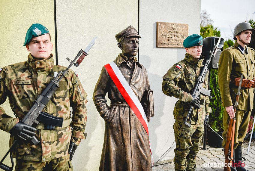 – Ale dzisiaj w gminie Oleśnica mamy również drugi powód do świętowania. Odsłaniamy pomnik rotmistrza Witolda Pileckiego – człowieka, który przyczynił się do utrzymania naszej suwerenności w czasach kiedy niemieccy i rosyjscy okupanci chcieli wymazać Polskę z mapy świata – powiedział, przybliżając życiorys Pileckiego.