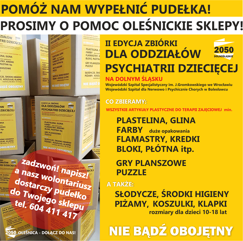– Chcesz pomóc pomagać ? Zapytaj w znanym sobie sklepie spożywczym, papierniczym, odzieżowym, księgarni czy przemysłowym – czy nie może przez 3 tygodnie postać nasz karton do którego klienci wrzucaliby kupione drobne przedmioty. Listę pomagających punktów będziemy stale publikować na naszych stronach – informuje Mirosław Płaczkowski ze stowarzyszenia Polska 2050.  I Zachęca: Napisz do nas lub zadzwoń 604 411 417.