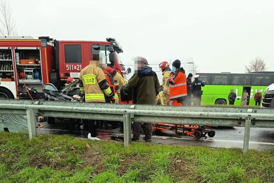 Poważny wypadek pod Smardzowem. 33-letnia kobieta jest w stanie ciężkim. Droga jest zablokowana