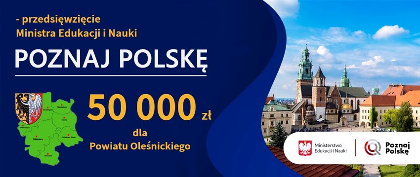 Powiat Oleśnicki otrzymał dofinansowanie ze środków budżetu państwa na realizację Przedsięwzięcia Ministra Edukacji i Nauki pod nazwą ,,Poznaj Polskę” w wysokości 50 000 zł.