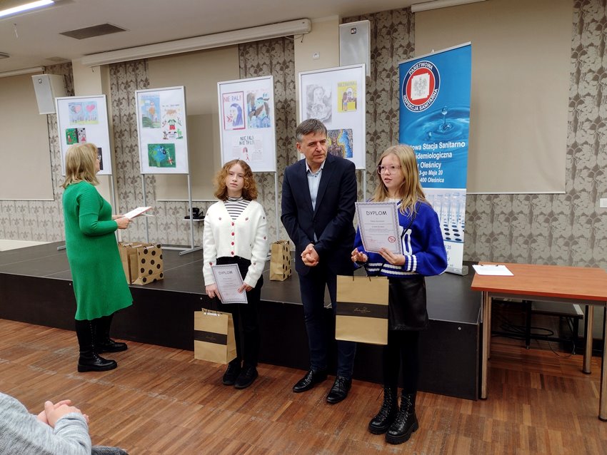 Autorzy nagrodzonych prac otrzymali nagrody rzeczowe ufundowane przez Starostwo Powiatowe w Oleśnicy oraz pamiątkowe dyplomy. Nagrody wręczyli: Anna Pietrzykowska – zastępca Państwowego Powiatowego Inspektora Sanitarnego w Oleśnicy oraz Sławomir Kapica – starosta powiatu oleśnickiego.