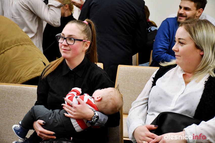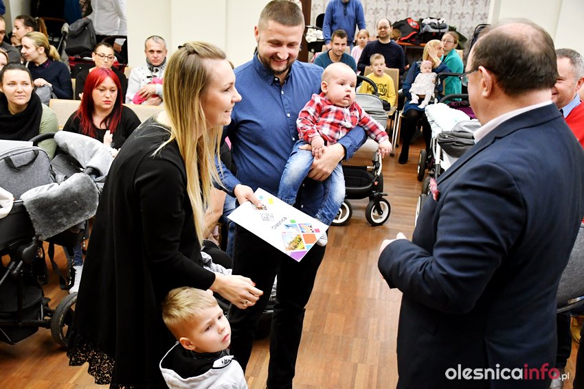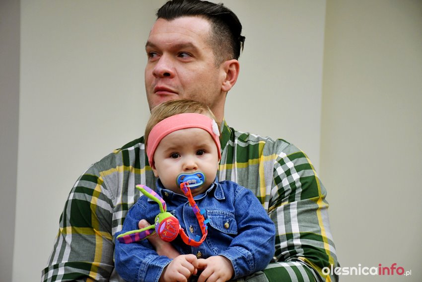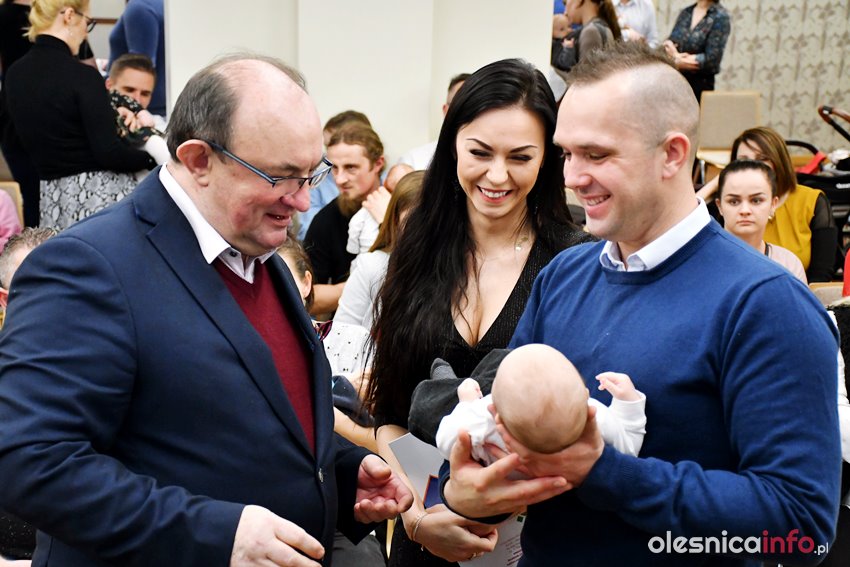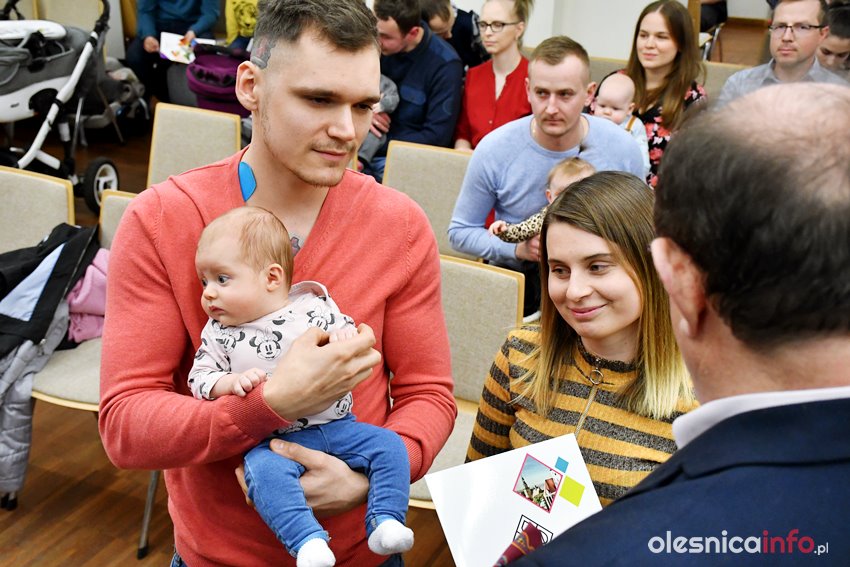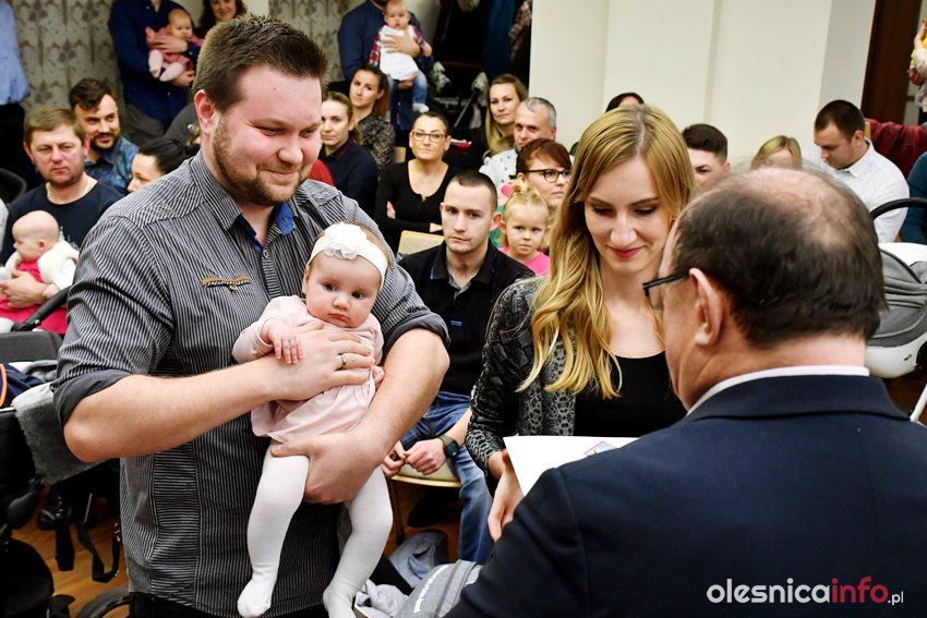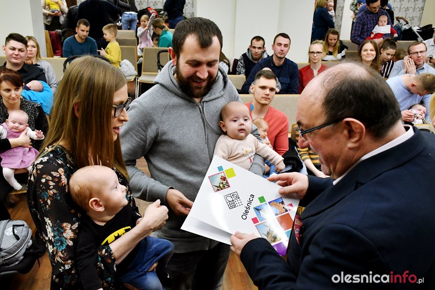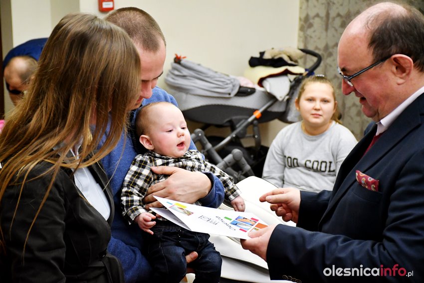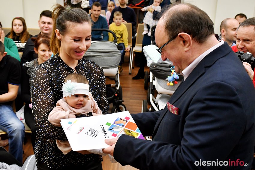 Były upominki i dla dzieci, i dla rodziców oraz gratulacje od burmistrza Jana Bronsia. który dziękował rodzicom za przybycie i za to, że utożsamiają się ze swoją małą ojczyzną – Oleśnicą. – Życzę, byście byli zadowoleni, jak Wasze dzieci rosną, a potem byli dumni z poziomu życia, jaki osiągają – mówił.