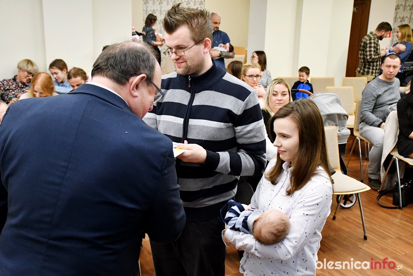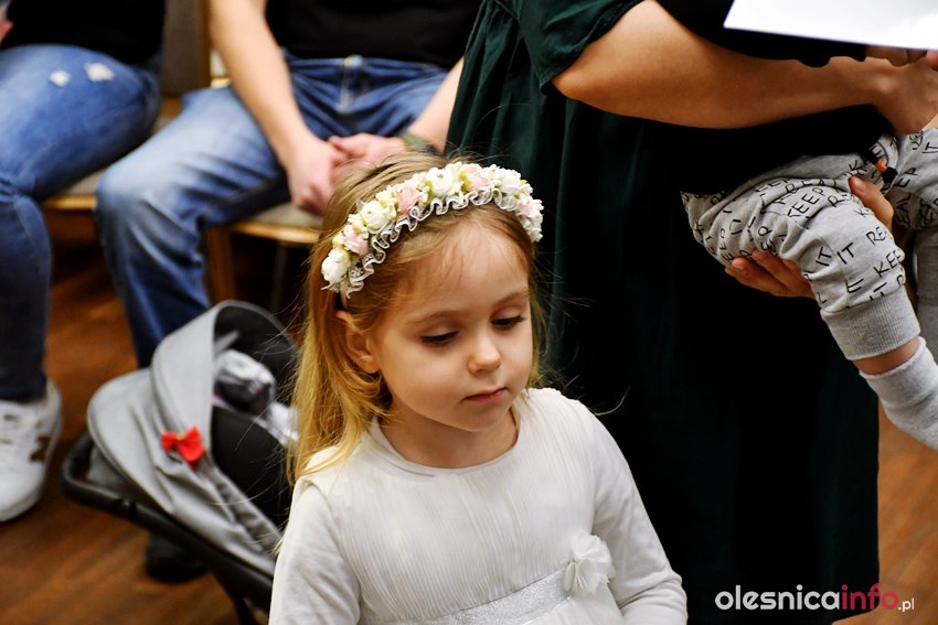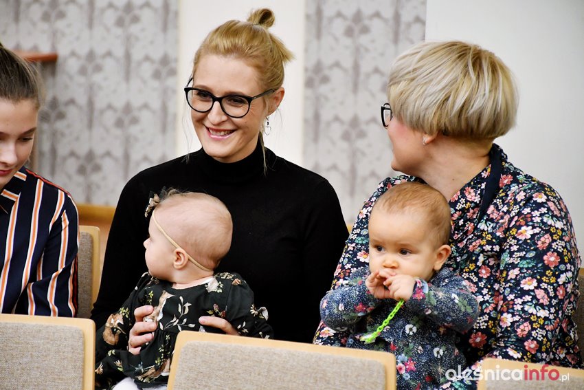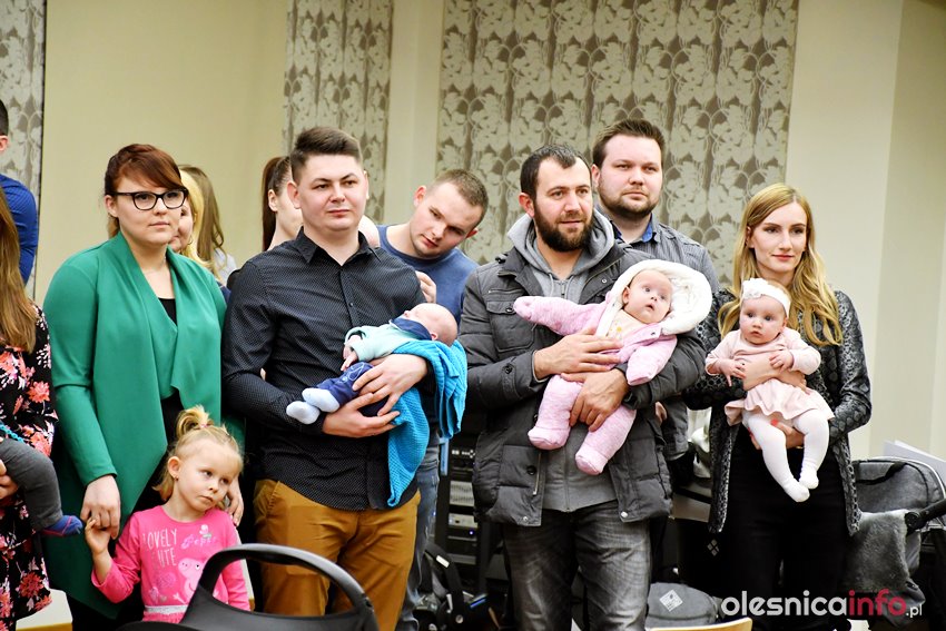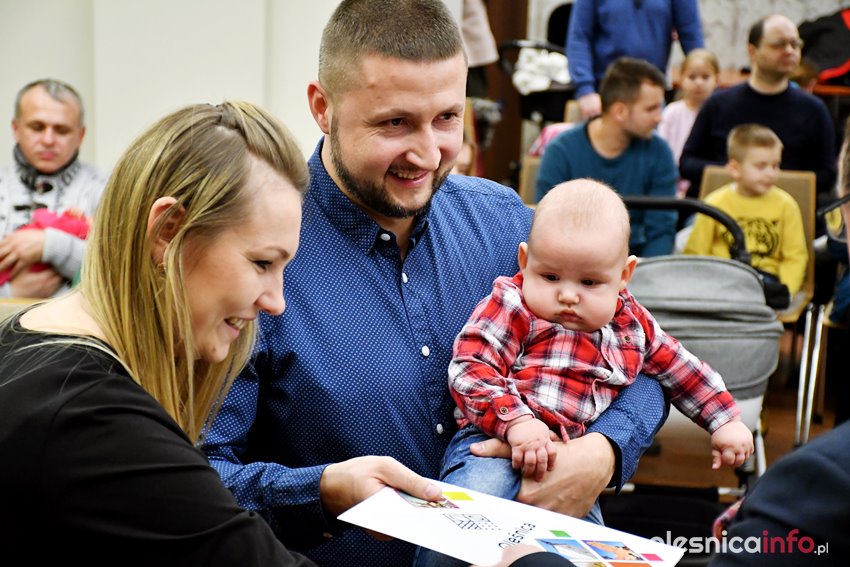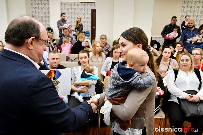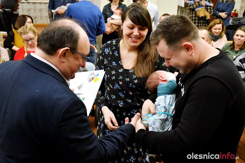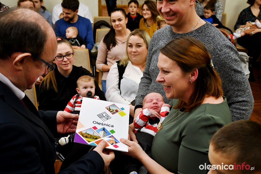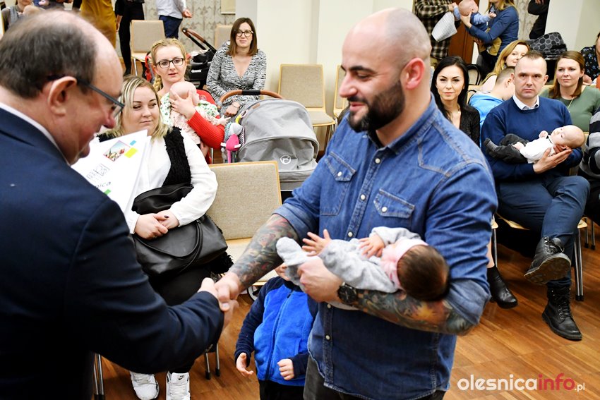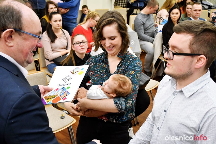 Były upominki i dla dzieci, i dla rodziców oraz gratulacje od burmistrza Jana Bronsia. który dziękował rodzicom za przybycie i za to, że utożsamiają się ze swoją małą ojczyzną – Oleśnicą. – Życzę, byście byli zadowoleni, jak Wasze dzieci rosną, a potem byli dumni z poziomu życia, jaki osiągają – mówił.