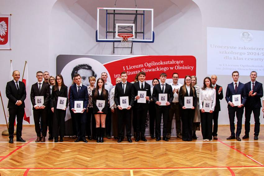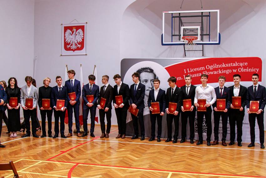 Gośćmi licealistów i nauczycieli byli Jan Bronś – Przewodniczący Rady Powiatu Oleśnickiego, Sylwia Perdek- Przewodnicząca Rady Rodziców oraz Małgorzata Muszyńska – członkini Prezydium Rady Rodziców. Podczas apelu dyrektor Marzena Helińska wraz z zaproszonymi gośćmi i wychowawcami klas wręczyła stypendia, nagrody oraz świadectwa z wyróżnieniem najzdolniejszym uczniom – 19 stypendiów Starosty Oleśnickiego za szczególne osiągnięcia w nauce, sporcie i działaniach artystycznych, 31 świadectw „z paskiem” za ponadprzeciętne wyniki nauczania.