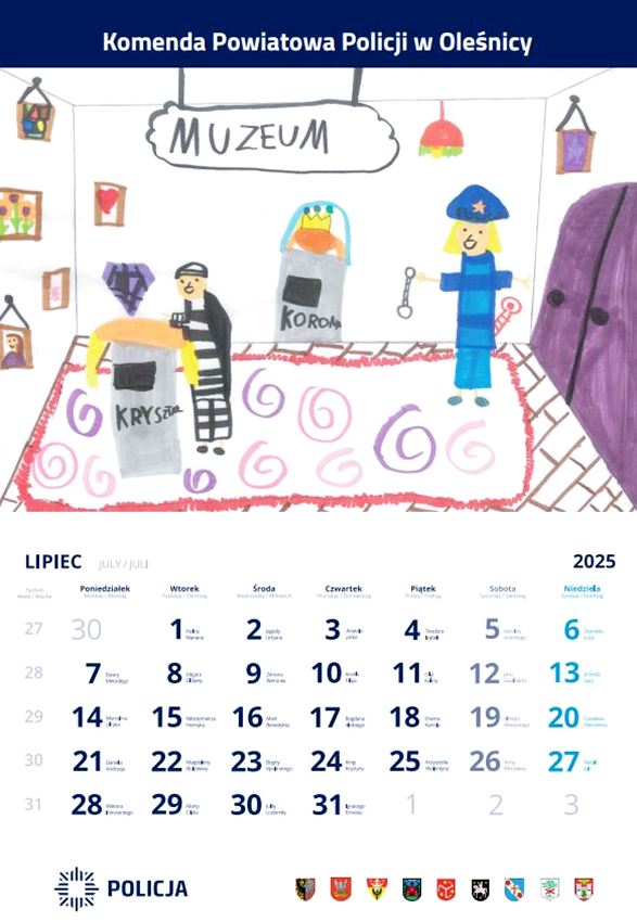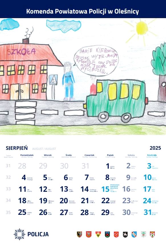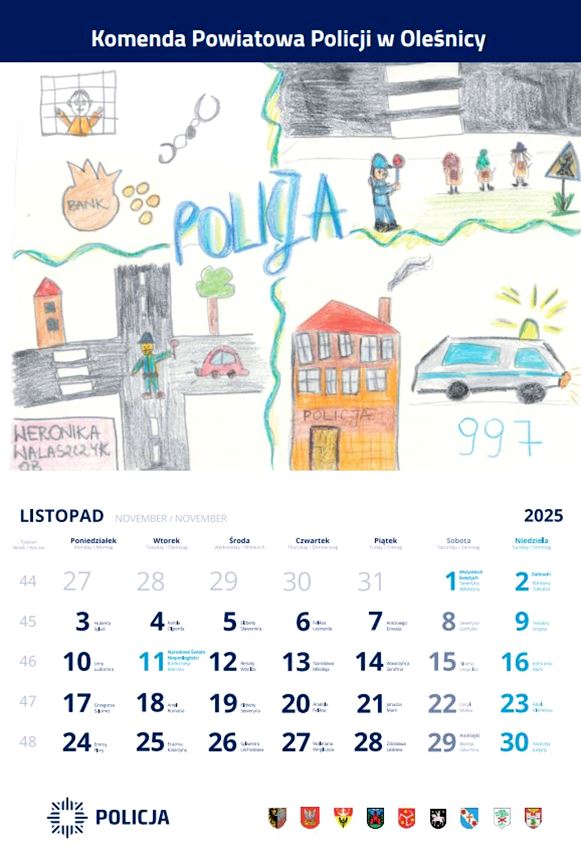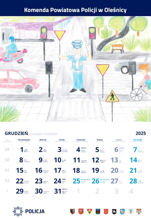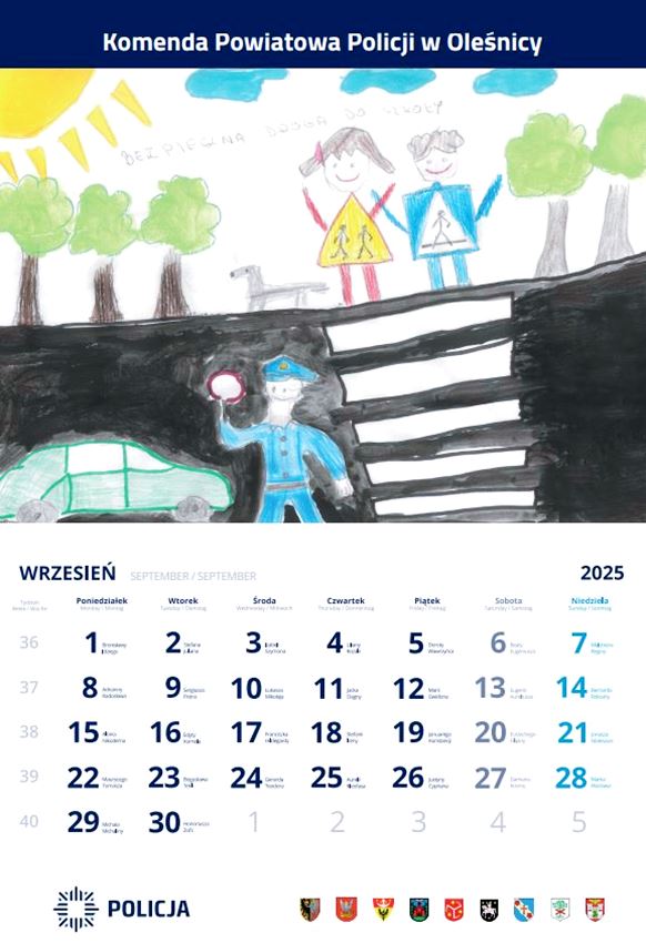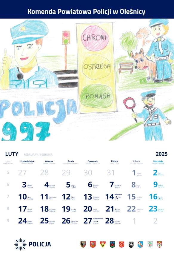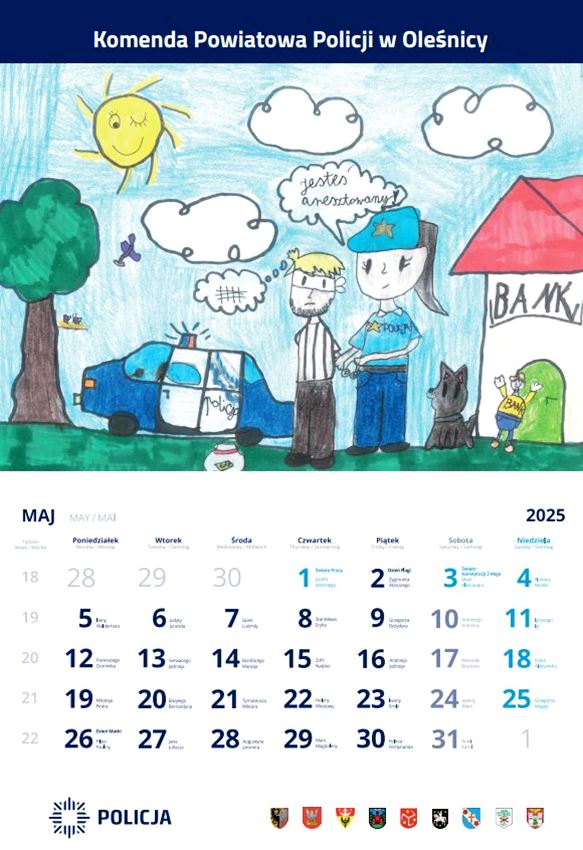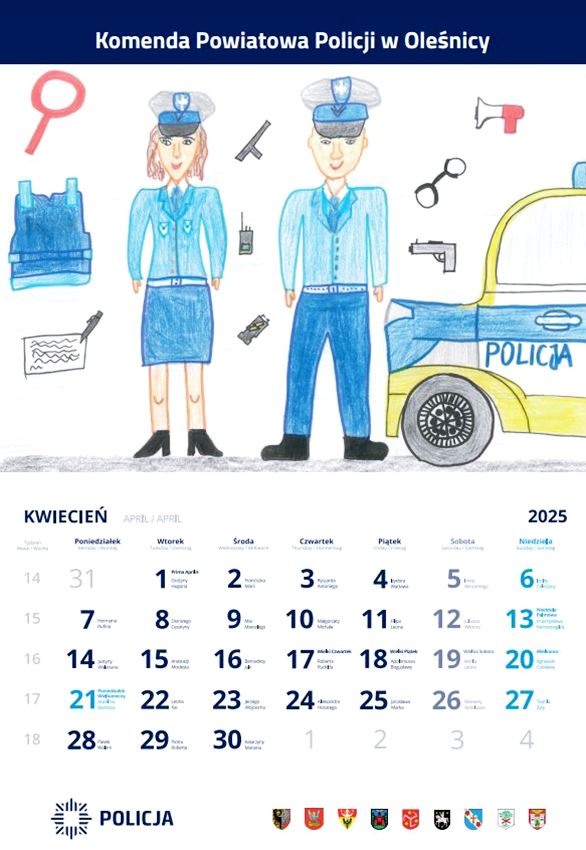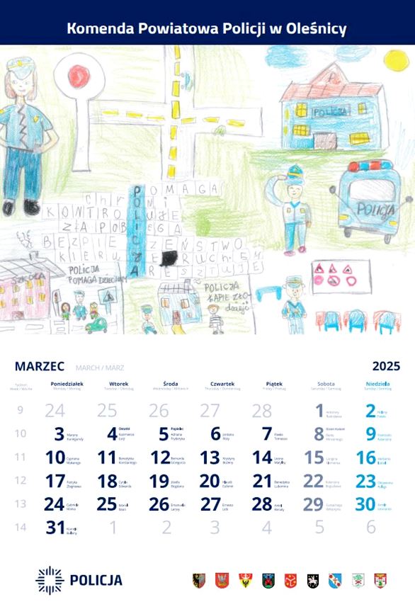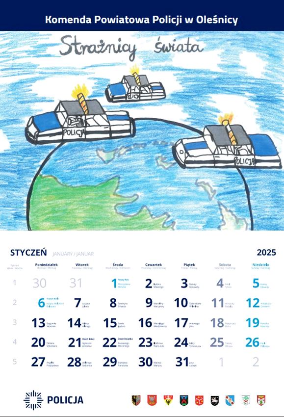 – Kalendarz, będący efektem pracy młodych artystów, to nie tylko piękna pamiątka, ale również doskonała forma promocji pozytywnego wizerunku policji wśród najmłodszych mieszkańców powiatu oleśnickiego. Projekt został zrealizowany dzięki hojnej pomocy wszystkich samorządów z terenu powiatu, które wsparły finansowo wydanie kalendarza – mówi Bernadeta Pytel z Komendy Powiatowej Policji w Oleśnicy.