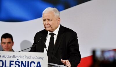 Prezes Jarosław Kaczyński pojawił się dzisiaj na spotkaniu z działaczami swojej partii w oleśnickim zamku. Spotkanie miało zamknięty charakter, a do zamku można było wejść tylko za okazaniem wejściówki. Każdy uczestnik był szczegółowo kontrolowany, a w sali rycerskiej i w sali pod słoniem w wytyczonych miejscach usadowiono działaczy z regionu wrocławskiego. Na specjalnie przygotowanej scenie … Czytaj dalej Prezes PiS Jarosław Kaczyński w Oleśnicy. Przeciwnicy czekali przed zamkiem „będziesz siedział” [ZDJĘCIA, WIDEO]