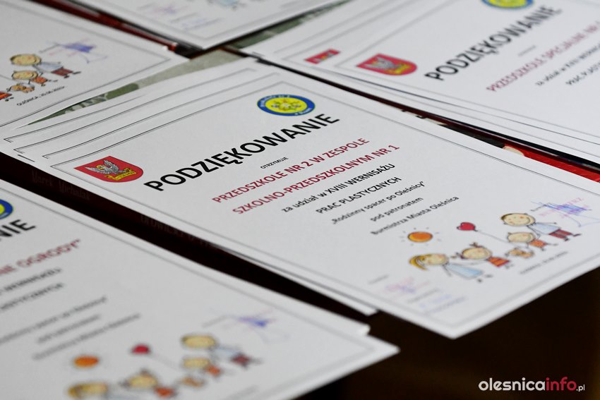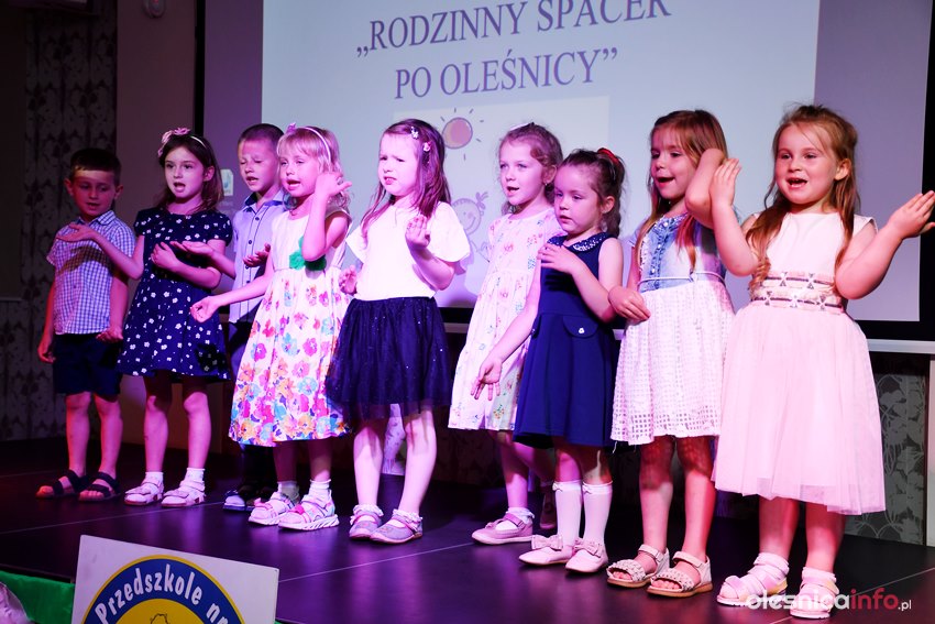 Ich autorami były dzieci z oleśnickich przedszkoli, które wzięły udział w konkursie plastycznym pod hasłem „Rodzinny spacer po Oleśnicy”. Przed wręczeniem nagród dla laureatów odbył się krótki występ artystyczny przygotowany przez gospodarzy Przedszkola nr 1. Już po tej części maluchy otrzymały upominki, które wręczały wiceburmistrz Edyta Małys-Niczypor oraz dyrektor Przedszkola nr 1 Sabina Boińska.