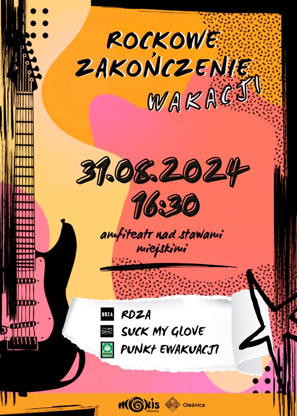 31 sierpnia o godzinie 16:30, w amfiteatrze nad stawamiodbędzie się „Rockowe Zakończenie Wakacji”. Na scenie wystąpią oleśnickie zespoły: RDZA, Suck my Glove oraz PUNKt EWAKUACJI.