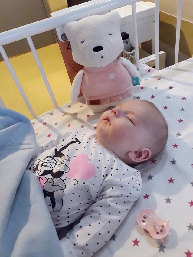 Pani Karolina opowiada o pierwszych tygodniach życia córeczki. O szczepieniu, gdy Tosia miała sześć tygodni, później o wizycie położnej, gdy dziewczynka skończyła osiem tygodni. – Zastanawialiśmy się, czy to normalne, że córeczka nie podnosi główki, nie reaguje podobnie, jak inne dzieci w jej wieku. Tosia stawała się coraz mniej energiczna, jej nóżki leżały bezwładnie, nie podnosiła główki… – opowiada mama dziewczynki. – Wprawdzie słyszeliśmy, że każde dziecko jest inne, że nie powinniśmy się martwić, ale położna potwierdziła nasze obawy. Szybko trafiliśmy do neurologa, który potwierdził nasze obawy. Zostaliśmy przyjęci na oddział, gdzie nasze dziecko przeszło serię badań, w tym genetycznych.