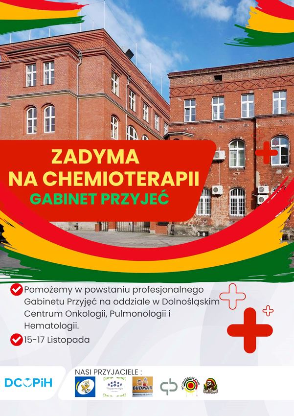 – Każda wizyta na oddziale chemioterapii dziennej to obowiązkowy wywiad z pacjentem. Wymaga poufności, intymności i komfortowych warunków. Brzmi dobrze? Dla nas też. Dlatego pomożemy w powstaniu profesjonalnego Gabinetu Przyjęć na oddziale w Dolnośląskim Centrum Onkologii, Pulmunologii i Hematologii we Wrocławiu – piszą organizatorzy akcji, którzy zaprosili do niej m.in. PSB Mrówkę Dolmat z Oleśnicy oraz firmę Strama. Obie firmy są jednymi ze sponsorów remontu zaplanowanego na najbliższy weekend.